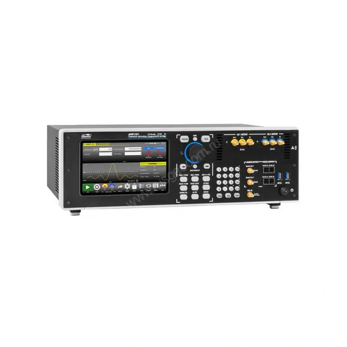 Генератор сигналов специальной формы АКИП-3421 (64M) – устройство с двумя выходными аналоговыми каналами и цифровыми выходами с числом каналов 16 или 32 (опционально). Прибор способен генерировать электрические сигналы и импульсы стандартных и произвольных форм. Максимальное значение частоты составляет 600 МГц.