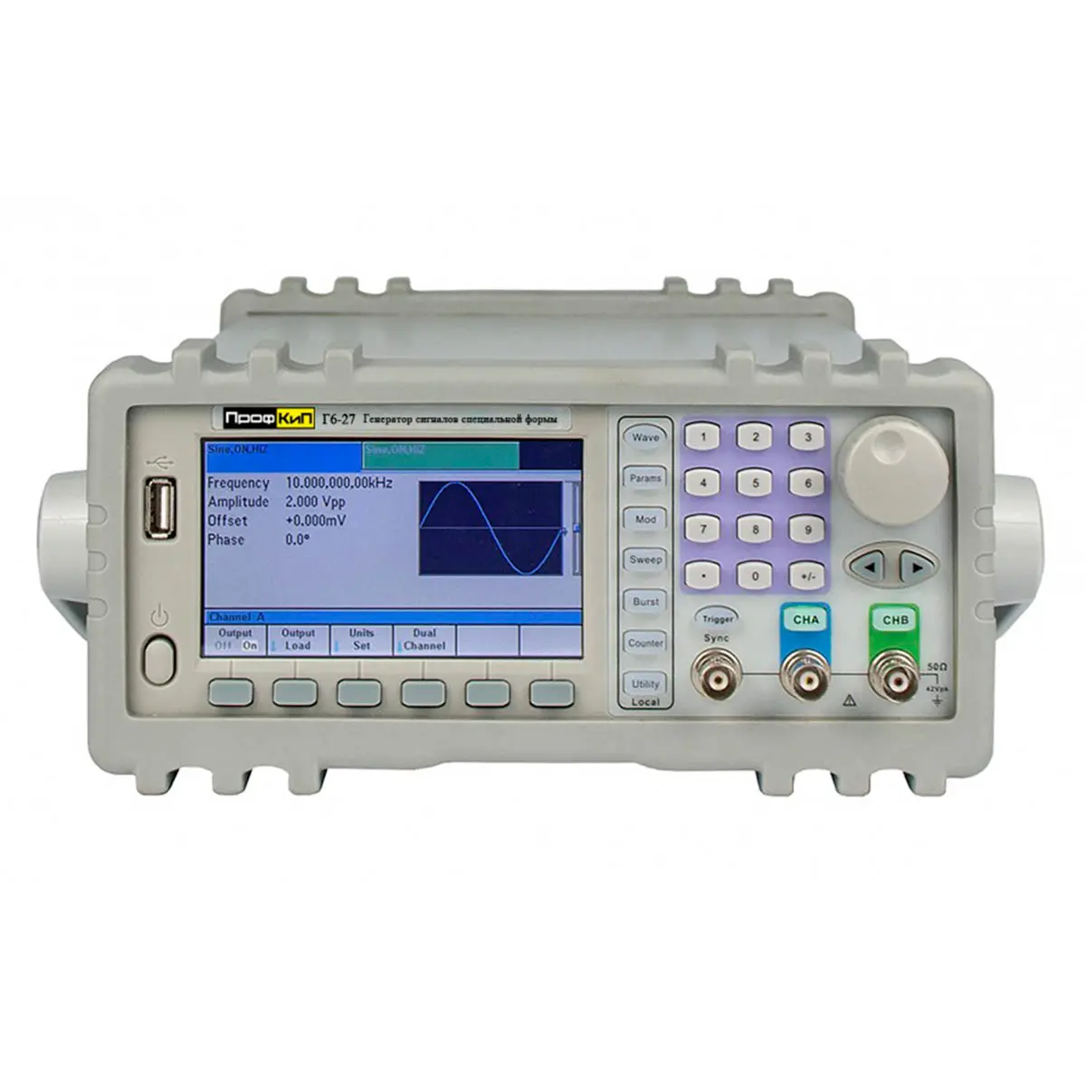 синус, прямоугольная, треугольная, прямоугольный импульс, сигнал произвольной формы;