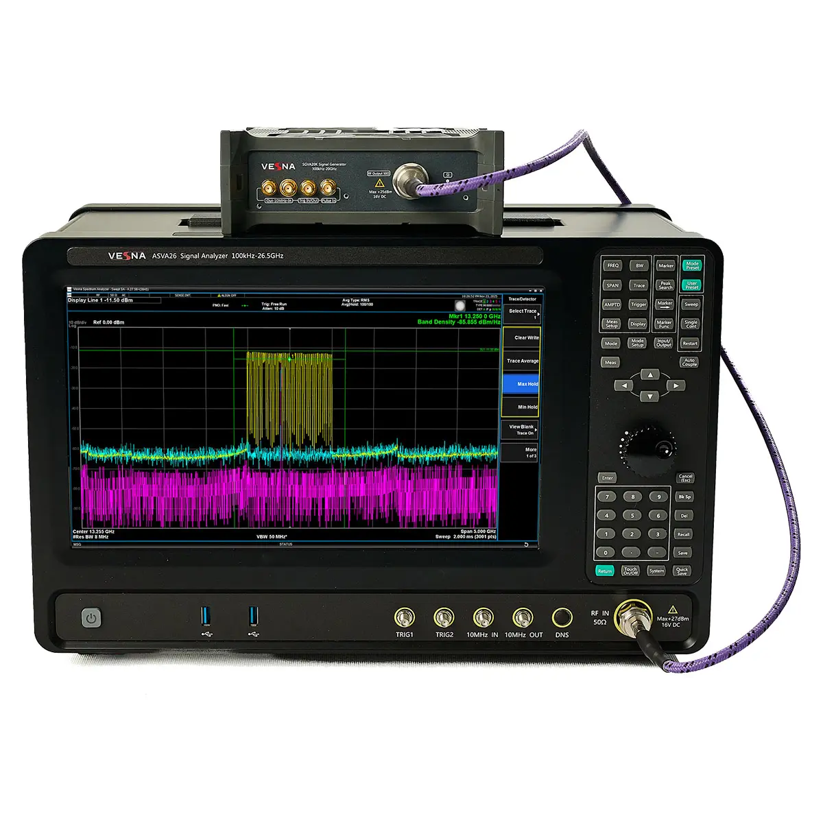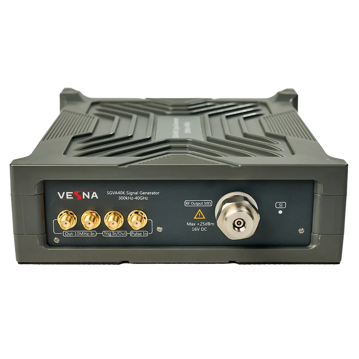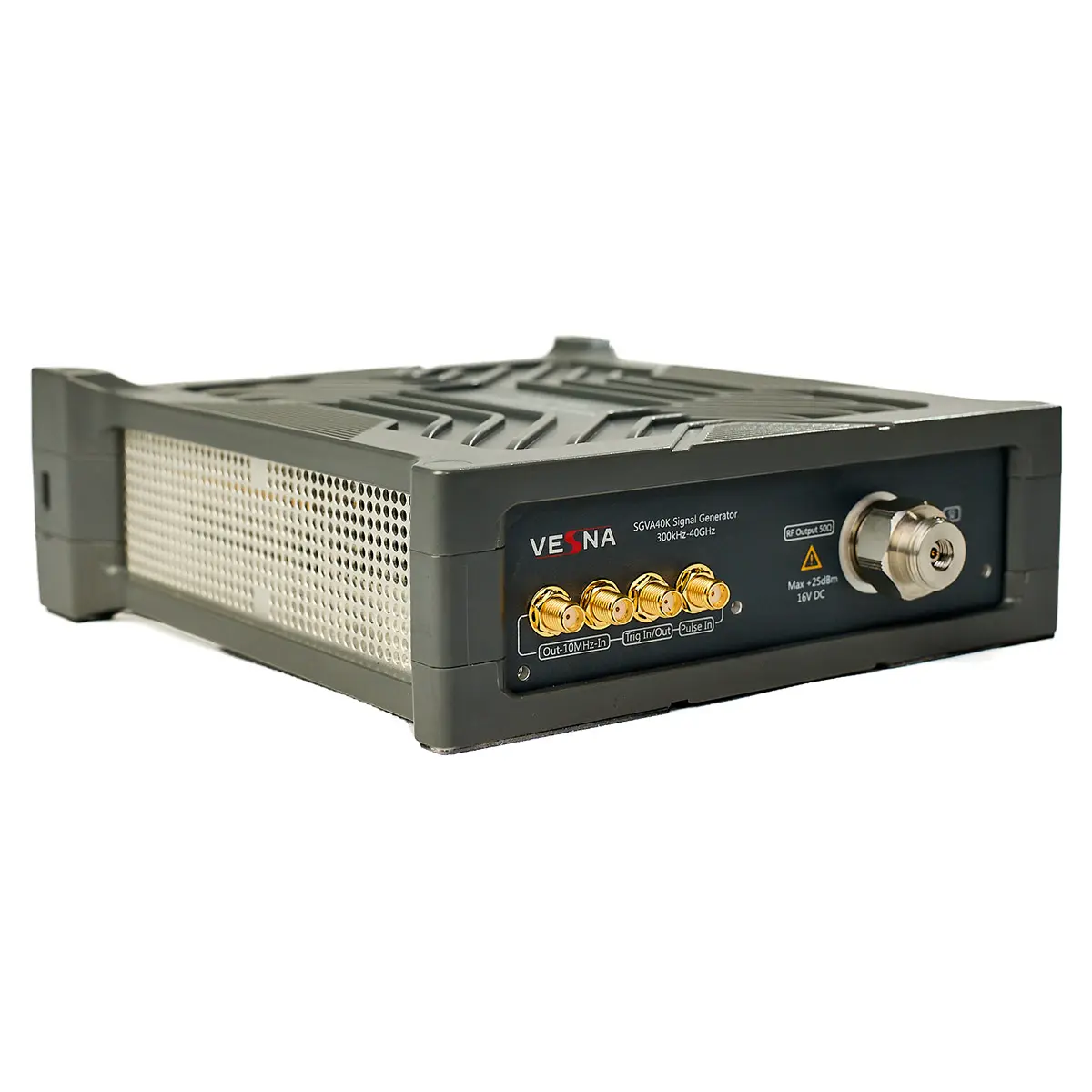 Генератор сигналов VESNA SGVA40K — это модульная версия лабораторного генератора SGVA40, предназначенная для интеграции в автоматизированные измерительные комплексы и стендовые системы. Он сохраняет все ключевые характеристики полноразмерной модели: диапазон 100 кГц – 40 ГГц, фазовый шум –127 дБн/Гц, поддержку векторной модуляции и I/Q-сигналов, но выполнен в компактном форм-факторе для установки в 19-дюймовую стойку.