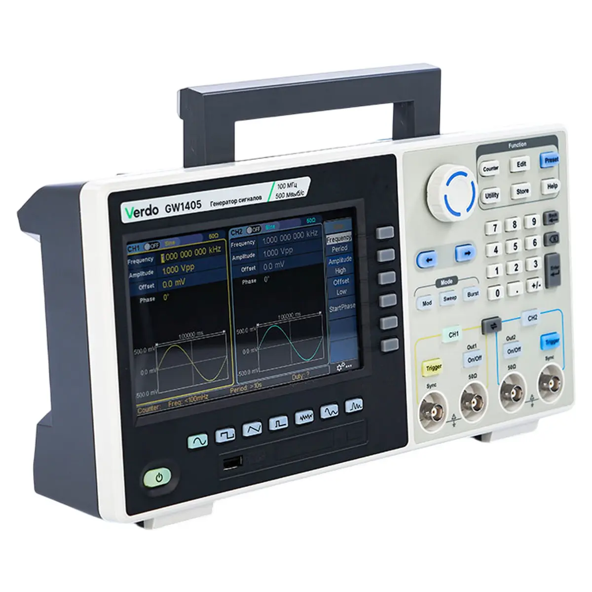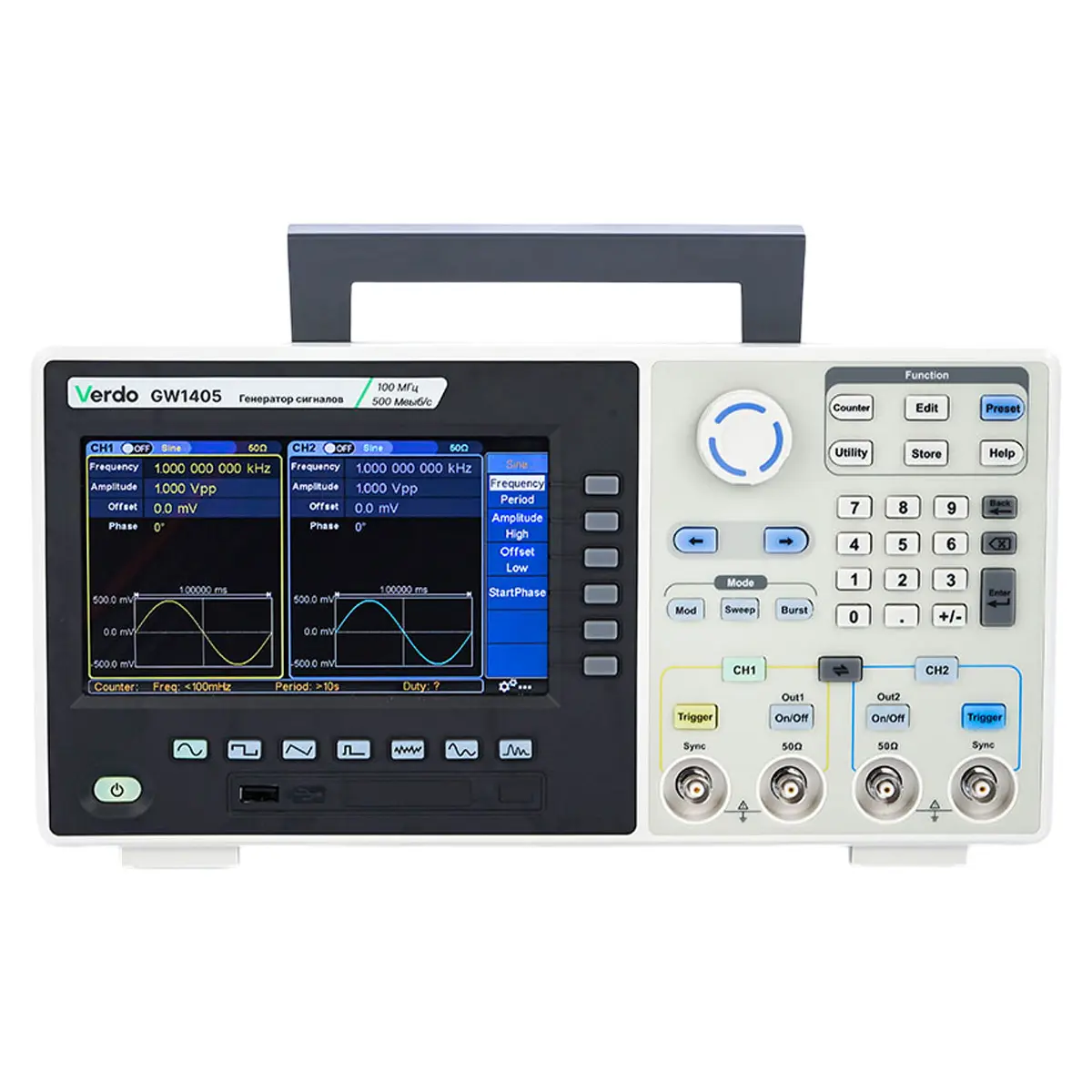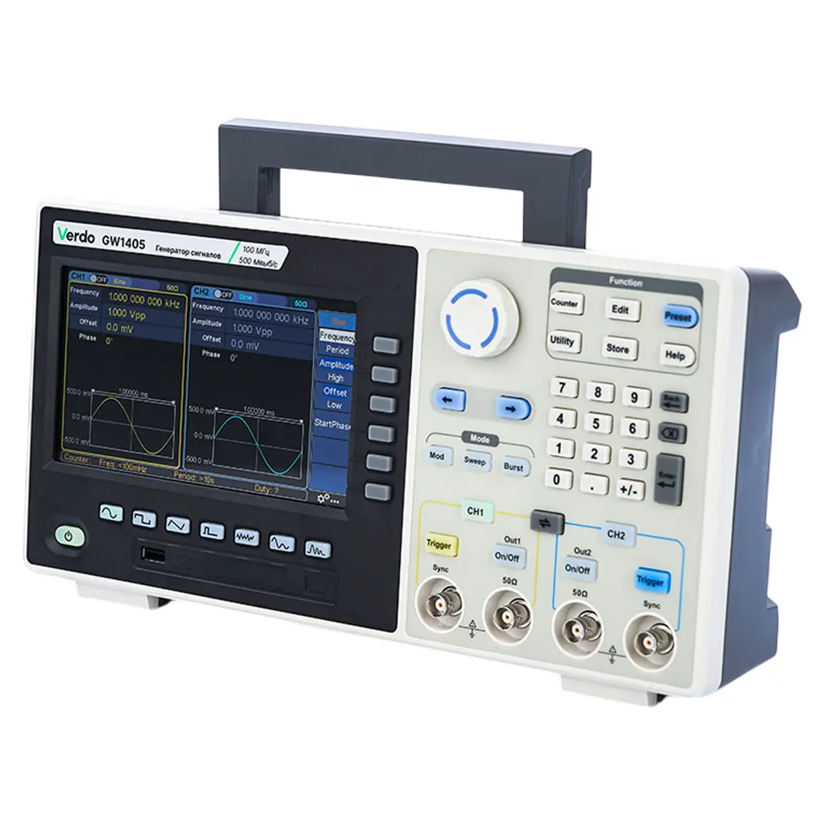 Синусоидальный, прямоугольный, импульсный, треугольный, шумовой, произвольной формы, гармонический