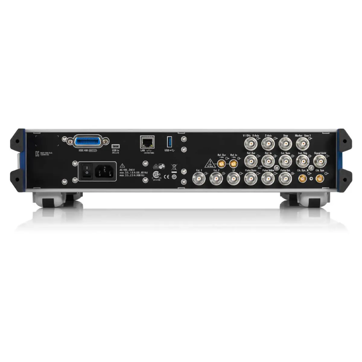 R&S SMA100B предоставляет различные способы вывода (или ввода) опорных сигналов. Вход внешней переменной опорной частоты от 1 до 100 МГц (опция R&S SMAB-K704) позволяет легко интегрировать R&SoSMA100B в существующие испытательные среды. Принимаемую опорную частоту также можно выводить на совершенно другом выходе опорной частоты.