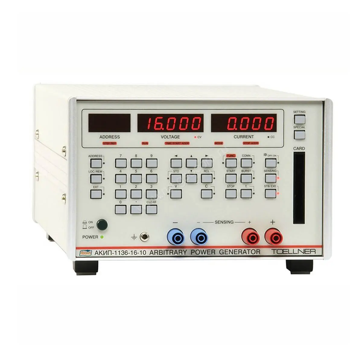 Источник питания АКИП-1136-24-7 позволяет подавать электропитание для обеспечения работы и тестирования разрабатываемых радиоэлектронных устройство. Он подает постоянный ток в диапазоне напряжений от 0 до 24 В с силой тока от 0 до 7 А. Максимальная мощность выходящего сигнала составляет 160 Вт.
