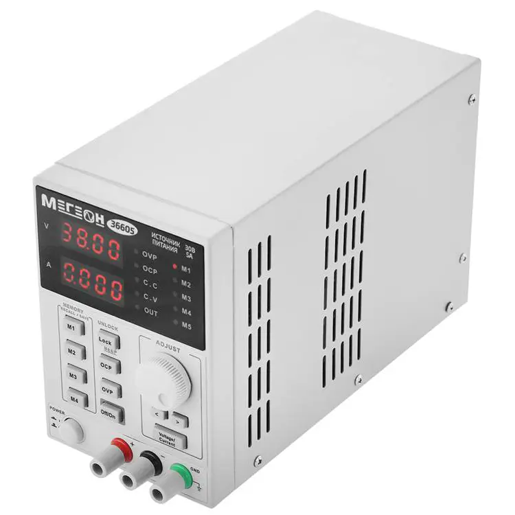 Одноканальный программируемый линейный источник питания МЕГЕОН 36605 представляет собой высокопроизводительный лабораторный прибор, построенный на основе трансформаторной схемы преобразования, оснащенный встроенной защитой от перегрева, короткого замыкания, перенапряжения и превышения силы тока с настраиваемыми порогами. Он обладает наибольшей мощностью среди моделей серии МЕГЕОН 36xxx, обеспечивая возможность питания оборудования, приборов и систем с рабочим напряжением до 60 В и токопотреблением до 5 А. Переключение режимов стабилизации напряжения или силы тока производится автоматически при достижении выбранных при настройке пороговых значений, без провалов и бросков мощности в момент перехода, что позволяет выполнять диагностику и тестирование прецизионных устройств.