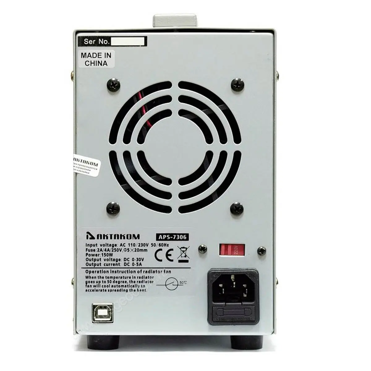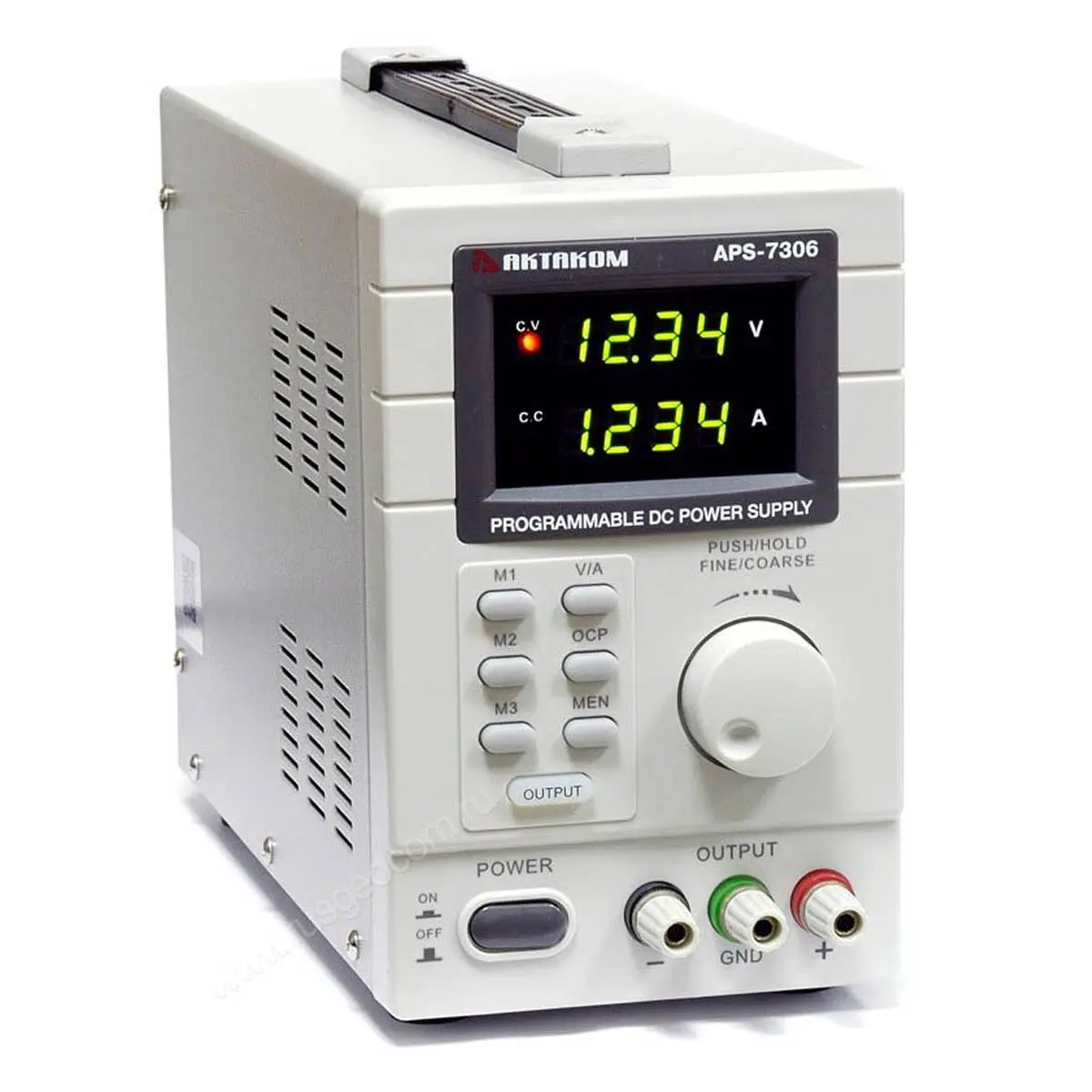 Источник питания Актаком APS-7306 - одноканальное лабораторное устройство с режимами стабилизации по току или напряжению, функциями программирования и дистанционного управления.
