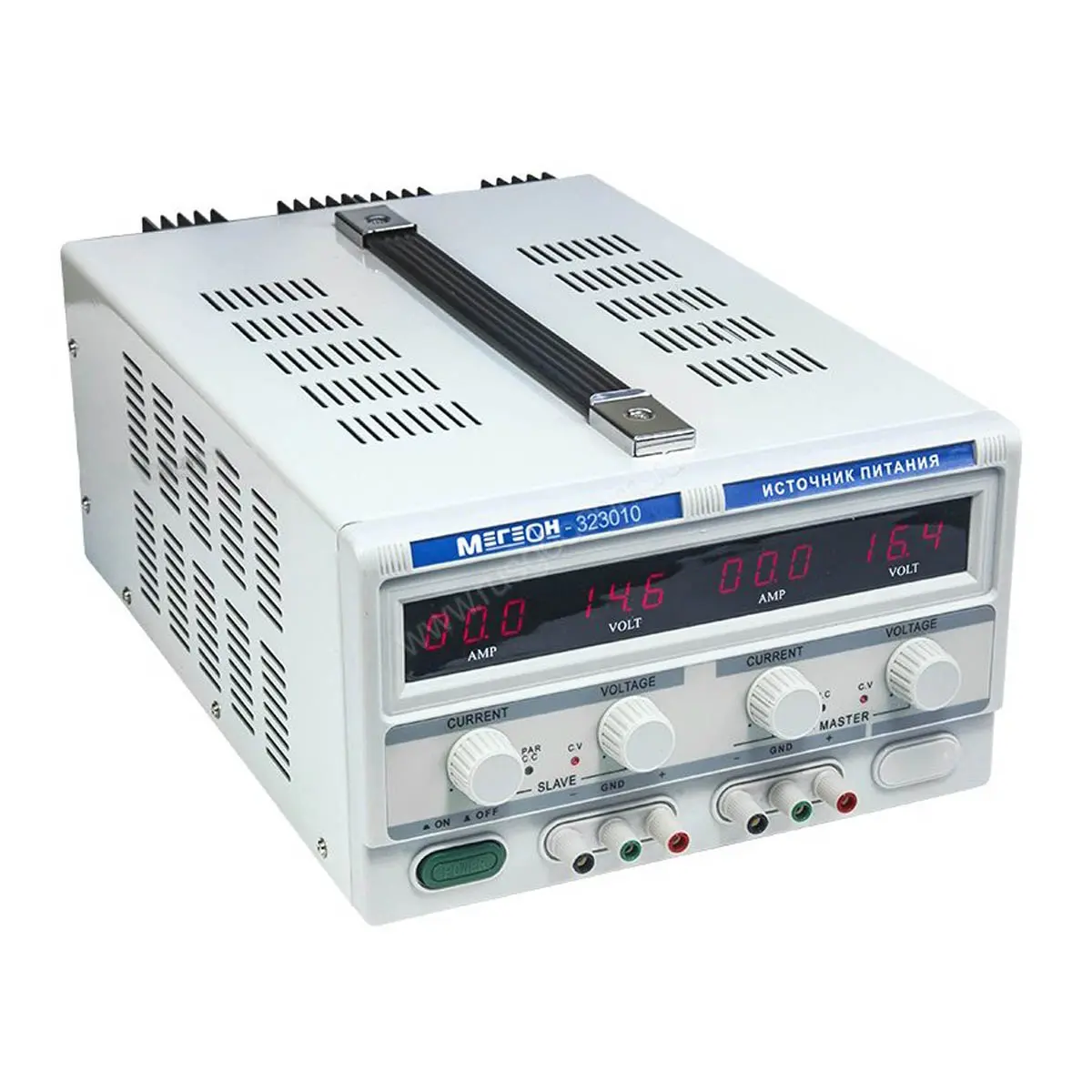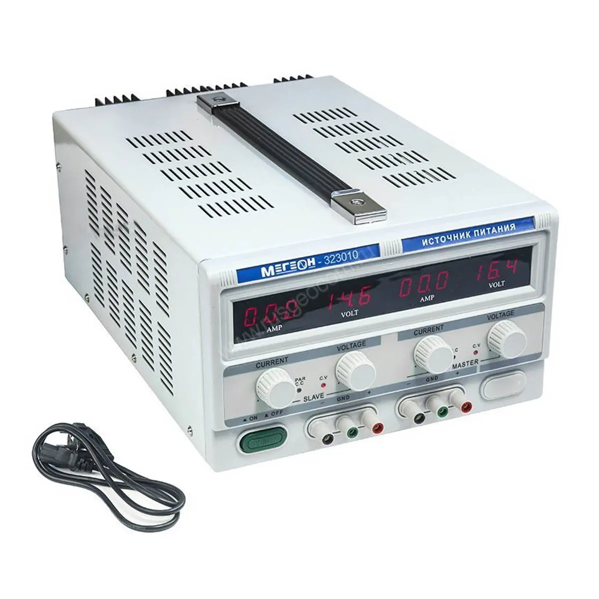 МЕГЕОН 323010 это компактный, высокоточный, двухканальный источник питания. Содержит два независимых регулируемых канала с напряжением 0…30В и током нагрузки 0…10А. В обоих каналах реализовано: термокомпенсация, компенсация по току, подавление пульсаций и высокоэффективная защита от перегрузки и короткого замыкания. Прибор найдёт широкое применение в учебных и исследовательских целях, при разработке и ремонте радиотехнических устройств, кроме этого подходит для промышленного применения.