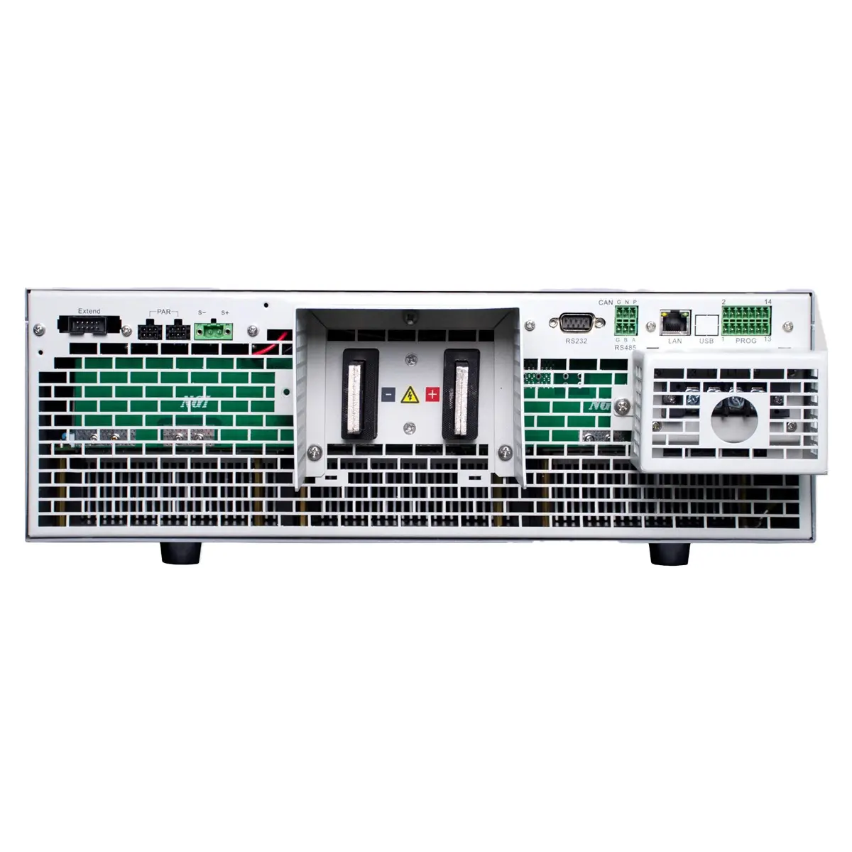 Для работы с прецизионными нагрузками источник питания NGI N38305-80-170 снабжен функцией удаленной компенсации напряжения, обеспечивающей поддержание стабильных электрических параметров на входах подключенного устройства. Также предусмотрена возможность программирования спадов и подъемов напряжения и силы тока с требуемым наклоном встроенными и внешними средствами. Режим моделирования внутреннего сопротивления позволяет имитировать работу ячеек аккумуляторной батареи при тестировании BMS. Поддержка интерфейса расширения мощности Extend позволяет объединять с несколько идентичных устройств, назначая одно из них ведущим, а остальных – ведомыми, что упрощает управление. При работе с мощными потребителями индуктивного характера, которые после отключения выдают обратные токи высокого номинала, рекомендуется дополнительно задействовать электронную нагрузку NL109-80 для безопасного рассеяния мощности.