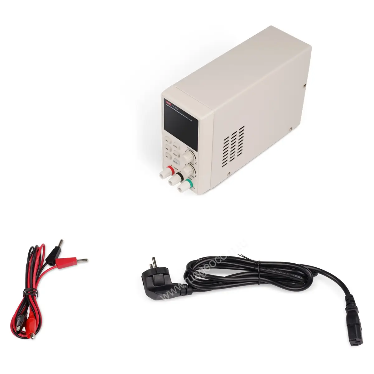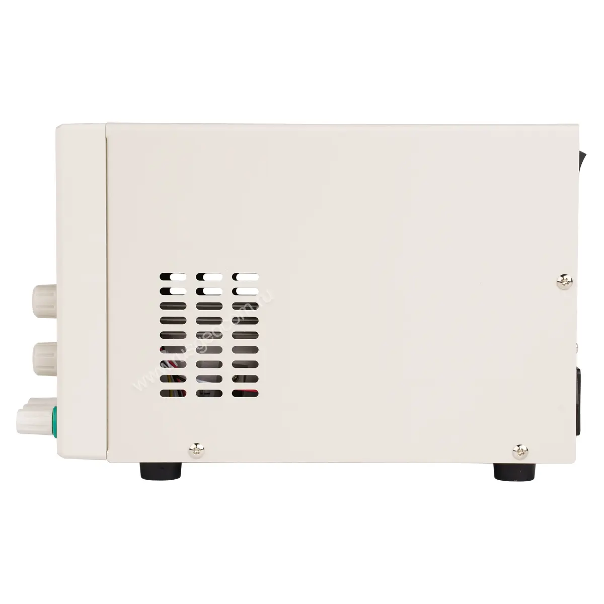Источник питания позволяет установить напряжение в диапазоне 0,01 В - 32 В и силу тока 0,001 А до 6 А. Устройство может работать от сети 110 В или 220 В, переключатель формата питания расположен на задней стороне корпуса.