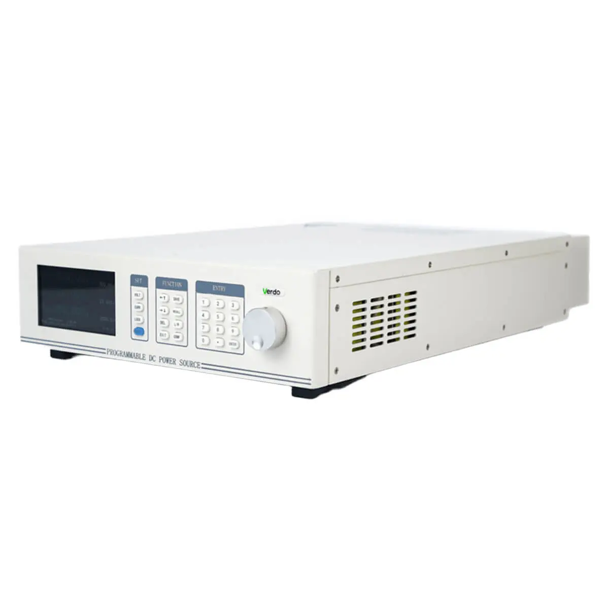 Источник питания VERDO PP1703 представляет собой одноканальный лабораторный прибор, который относится к установкам большой мощности и снабжен интерфейсами для функционирования в составе автоматизированных систем. Устройство предназначено для работы с нагрузками с номинальным энергопотреблением до 1000 Вт, выдавая стабилизированное постоянное напряжение до 200 В, силу тока до 8 А либо мощность установленного уровня, с возможностью выбора приоритета между режимами c.c. и c.v., а также поддерживает функцию программного изменения выходных параметров.