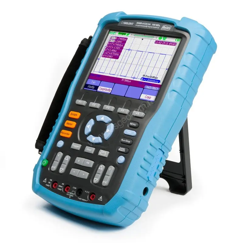 Цифровой осциллограф, мультиметр с функцией TrendPlot. Автоматические и курсорные измерения. Синхронизация по длительности импульса и ТВ. Математические функции и БФП. Регистратор - 7 МБ. Мультиметр - измерение напряжения, тока, сопротивления, емкости, прозвонка цепи, проверка диодов. TrendPlot - 800 кБ (осциллограф), 1,2 МБ (мультиметр). Батарейное питание - Li-ion аккумулятор (до 5 ч).