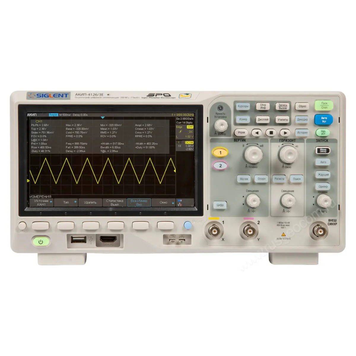 АКИП-4126/3Е — это профессиональный двухканальный осциллограф, сочетающий в себе классическую надежность измерительных приборов АКИП с современными коммуникационными технологиями. Обладая полосой пропускания 350 МГц и частотой дискретизации до 2 ГГц, этот прибор является отличным решением для диагностики и отладки высокочастотных электронных схем. Модель выделяется на фоне конкурентов не только качеством захвата сигнала, но и расширенной комплектацией, включающей Wi-Fi адаптер, что значительно упрощает интеграцию устройства в современную беспроводную лабораторную среду.