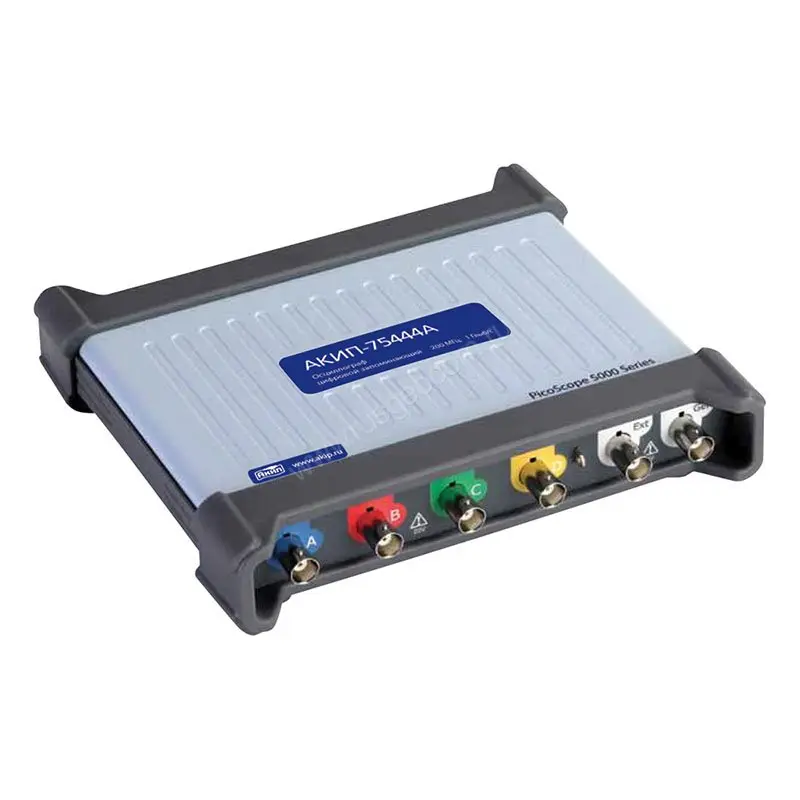 Переключаемое разрешение АЦП. "3 в 1" осциллограф, анализатор спектра, функциональный генератор. Сегментированная память до 10.000 осциллограмм. Цифровая регистрация на ПК (streaming mode). Анализатор спектра
