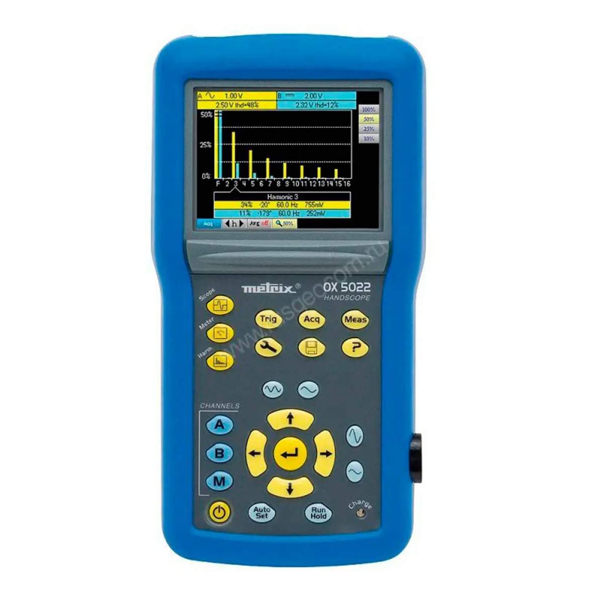 Единственный осциллограф с независимыми 2-мя каналами, из представленных на рынке приборов, с цветным дисплеем, помещающийся в одной руке. Разработанные для эксплуатации в полевых условиях, осциллографы серии HANDSCOPE очень просты в применении. Прибор удобно держать одной рукой, его корпус, выполненный из эластомера, ударопрочный со степенью защиты IP54. Клавиши управления, расположенные на передней панели прибора, легкодоступны даже в том случае, если Вы носите защитные (изоляционные) перчатки. Встроенная многоязычная интерактивная функция HELP для оказания помощи пользователю без необходимости обращения к руководству по эксплуатации прибора. Легко читаемый цветной экран со светодиодной подсветкой дает возможность ограничить потребление энергии в осциллографе серии HANDSCOPE. Очень важной особенностью осциллографов серии HANDSCOPE является режим "hands-free", то есть возможность оставлять свободными руки за счет нашейного ремешка и сумки, поставляемых с прибором. Настолько компактный, что он легко помещается в одной руке, осциллограф серии HANDSCOPE идеально подходит для работы в полевых условиях на электроустановках и для общих задач по техническому обслуживанию. Благодаря своим изолированным каналам, Пользователи могут проводить измерения в полной безопасности, без специальных мер предосторожности. Осциллографы серии HANDSCOPE являются многофункциональными инструментами измерения (осциллограф - мультиметр - анализатор гармоник), позволяющие проводить измерения, фиксировать и анализировать результаты на ПК. Разработанный специально для электриков новая серия осциллографов от компании METRIX на 20 очень проста и удобна в использовании, даже в защитных резиновых перчатках. Все приборы сделаны в защитном эластичном корпусе и имеют пыле и влагозащиту IP54.