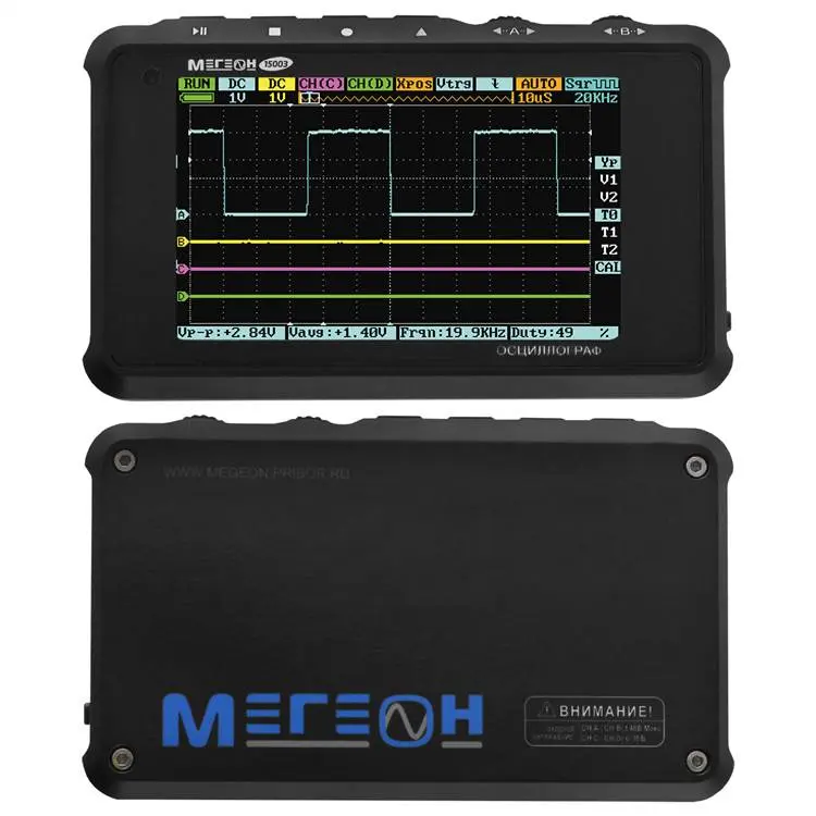 Осциллограф МЕГЕОН 15003 представляет собой цифровой прибор миниатюрного класса в слим-исполнении, с частотой дискретизации 100 Мвыб/с и полосой пропускания 15 МГц. Устройство позволяет производить оперативный контроль базовых параметров радио- и электрооборудования при проведении пуско-наладочных работ, оценку правильности функционирования в ходе осмотров и обслуживаний, выполнять первичную диагностику автомобильных и других систем, а также решать радиолюбительские задачи.