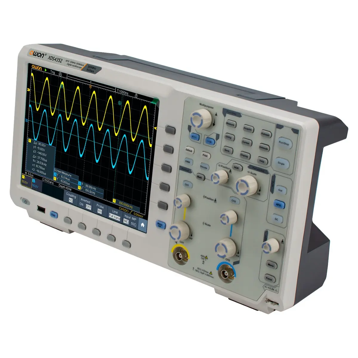 Цифровой осциллограф OWON XDS4352 предлагает инженерам и техническим специалистам все необходимые инструменты для анализа и диагностики электрических сигналов. Благодаря своим выдающимся характеристикам, он становится незаменимым помощником в работе, позволяя проводить точные измерения и углубленный анализ сигналов. Это инвестиция в качество и надежность, которая оправдает себя в самых требовательных задачах.