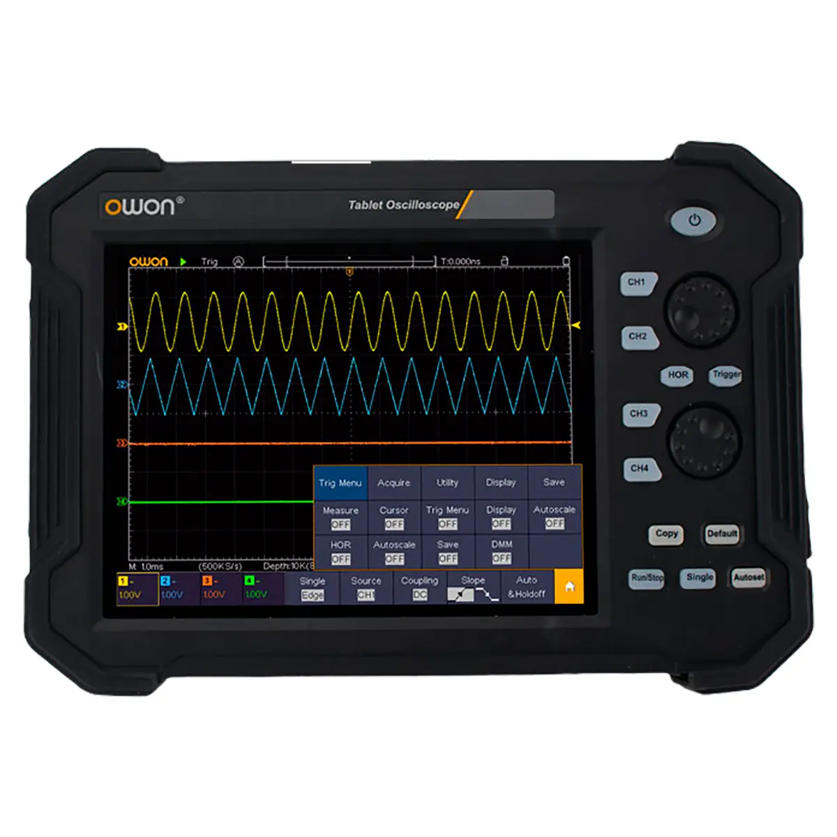 Планшетный осциллограф OWON TAO3104A сочетает в себе высокую производительность и удобство использования. Прибор предлагает 4 канала с полосой пропускания до 100 МГц, с возможностью работы всех 4 каналов одновременно.