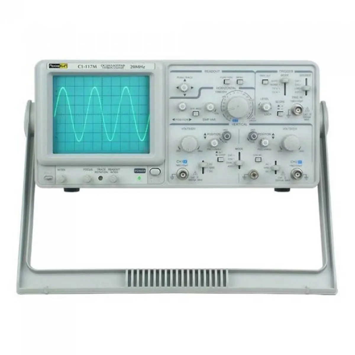 0.5 дел (CH1, CH2) 2.0 дел (ALT) 200 мВ (EXT) ТВ-синхроимпульс > 1 дел при 1 В (EXT)