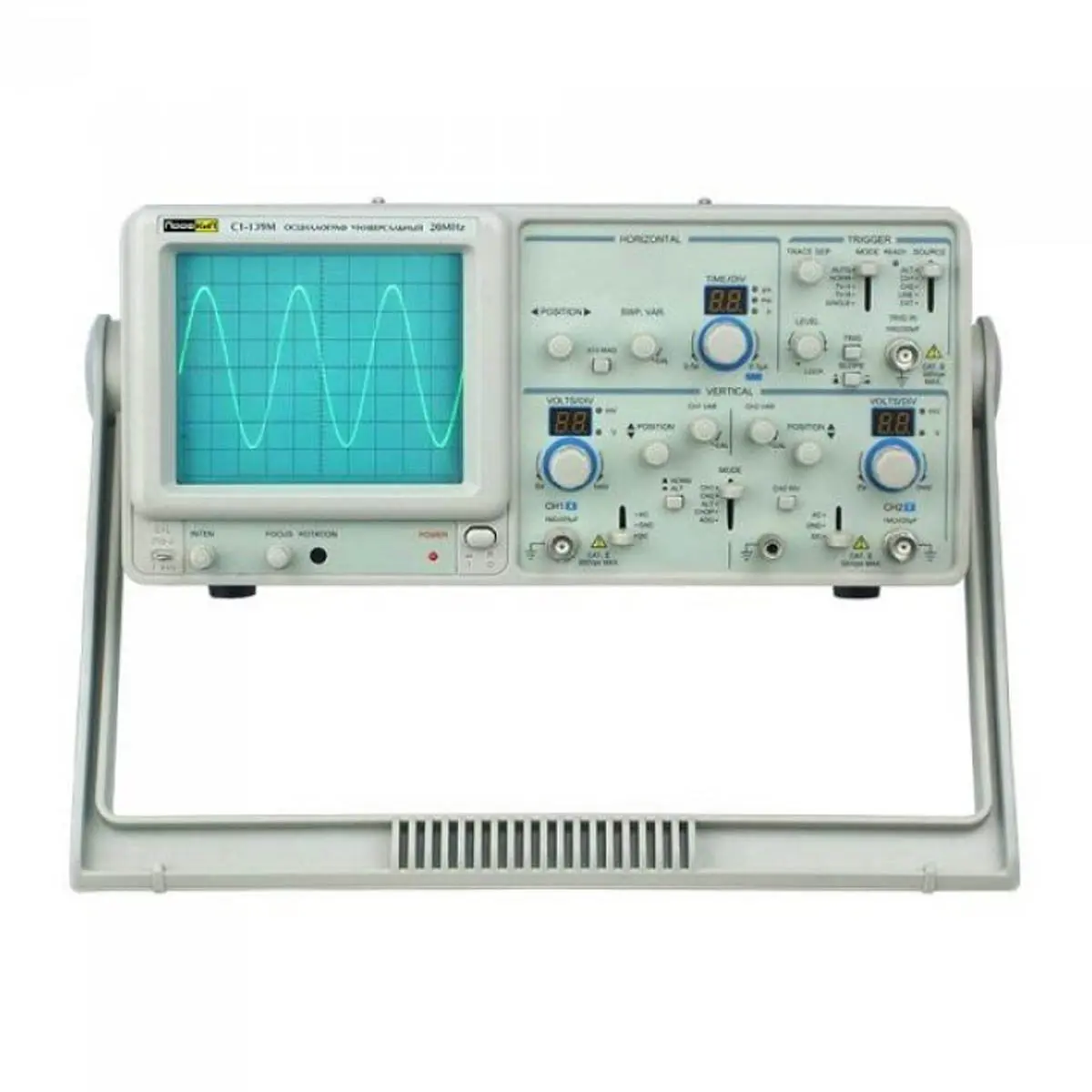 1.5 дел (CH1, CH2) 3.0 дел (ALT) 0.8 дел (EXT) ТВ-синхроимпульс > 1 дел при 1 В (EXT)