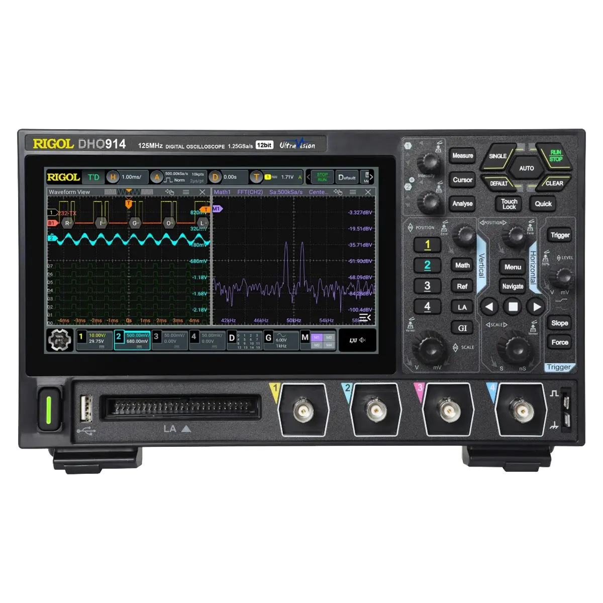 Цифровой осциллограф RIGOL DHO914 выделяется среди лабораторных приборов экономичного класса улучшенной точностью и расширенной функциональностью – за счет использования 12-битного АЦП и ASIC-чипсета с пониженным уровнем собственных шумов. Такой же компактный, как изделия серии DHO800, он отличается повышенной до 125 МГц полосой пропускания, увеличенным объемом памяти, большей чувствительностью, расширенным перечнем декодируемых протоколов, а также поддержкой работы со смешанными сигналами – благодаря наличию 16 цифровых каналов, помимо 4 аналоговых. Выполненное в плоском корпусе, с поддержкой крепления на кронштейне VESA, устройство не загромождает рабочее место и может устанавливаться на шарнирной стойке или размещаться на стене либо другой вертикальной поверхности.