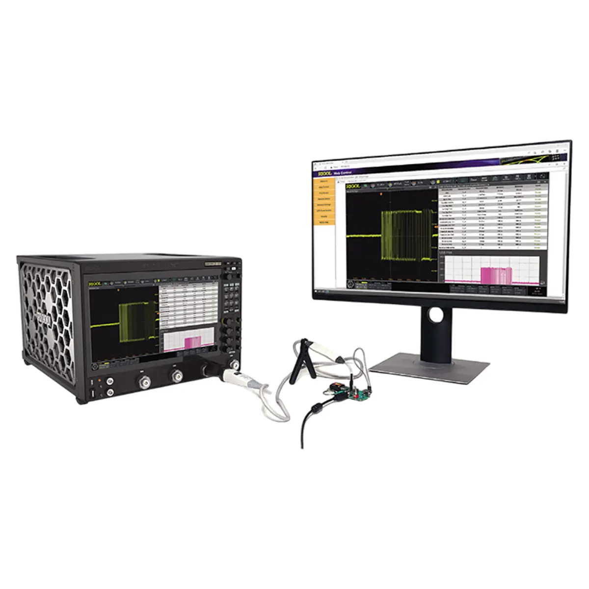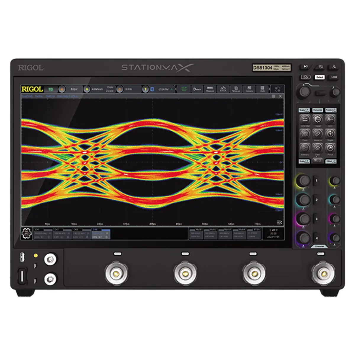 Как многофункциональное устройство, осциллограф RIGOL DS80604 оборудуется прецизионным цифровым вольтметром и частотомером, которые могут подключаться к любому из аналоговых каналов. Прибор снабжен широким набором измерительных, вычислительных и аналитических функций. Он обеспечивает запись и воспроизведение осциллограмм, запуск шин и декодирование протоколов, автоматические измерения, тестирование по маске в режиме допускового контроля, анализ гистограмм для быстрого выявления потенциальных проблем в сигналах и оценки их динамики, и т.д.