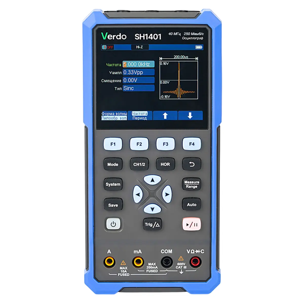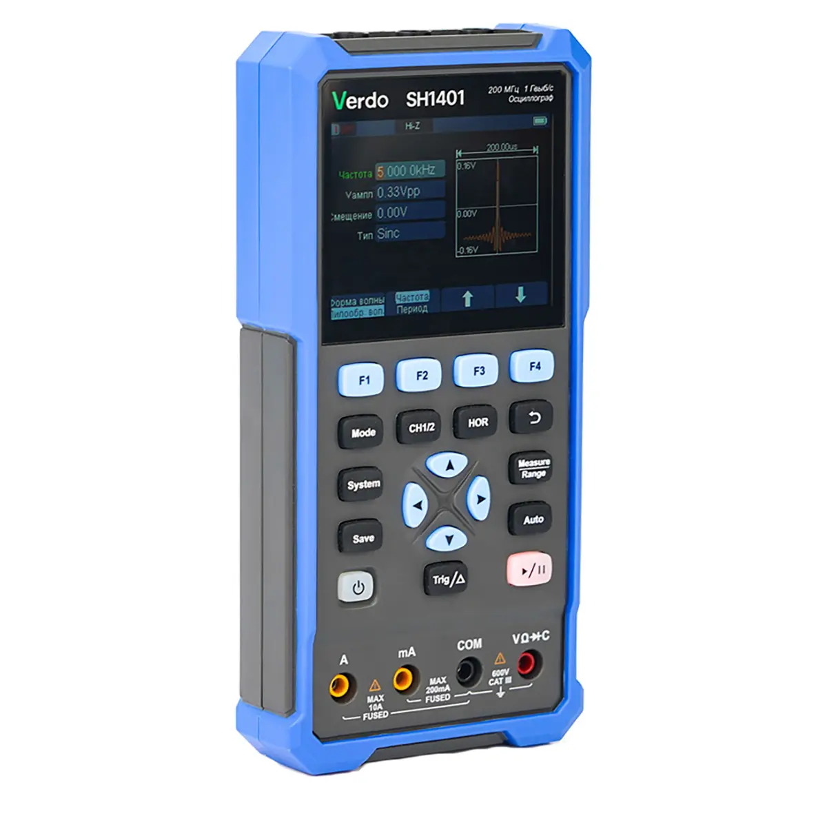 Осциллограф-мультиметр VERDO SH1401— это двухканальный цифровой прибор с полосой пропускания до 40 МГц, который вмещает в себе также 4-разрядный TrueRMS мультиметр. Такой многофункциональный инструмент позволяет специалистам проводить широкий спектр измерений, не прибегая к использованию нескольких устройств. Компактный корпус делает его удобным для транспортировки и использования в ограниченных пространствах.