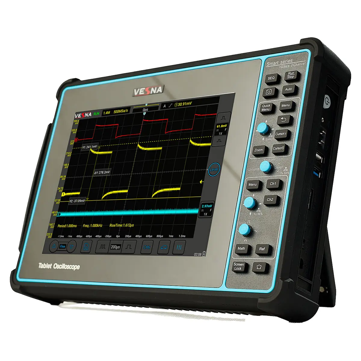 Компактный форм-фактор и встроенное программное обеспечение позволяют использовать цифровой осциллограф как в лаборатории, так и на выезде — от производственной линии до сервисного центра. Высокая скорость обновления минимизирует риск пропуска одиночных глитчей, дребезга контактов или импульсных помех, что особенно важно при диагностике нестабильной работы оборудования.