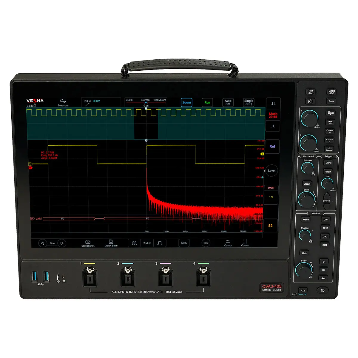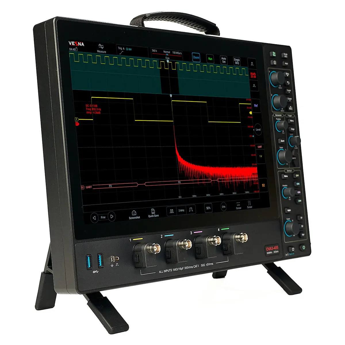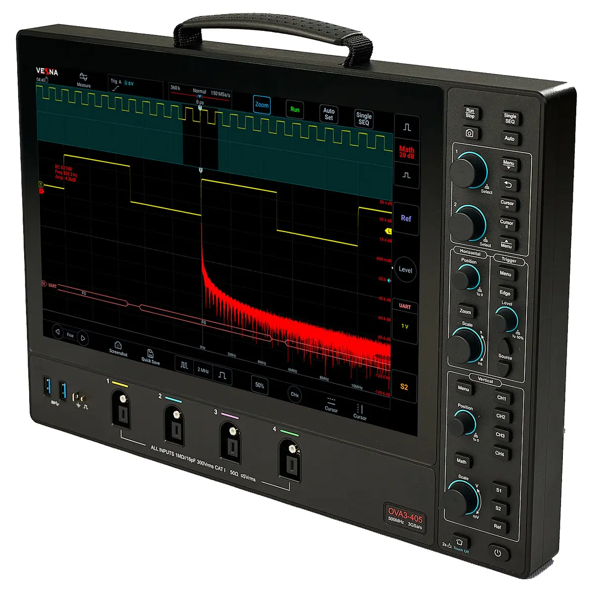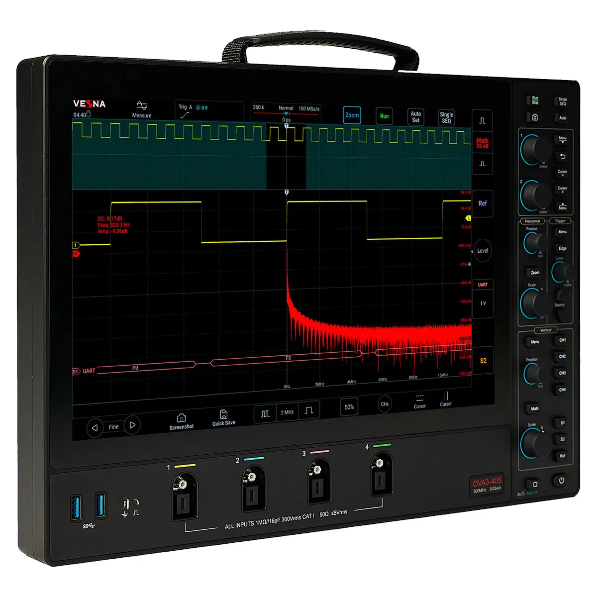 Осциллограф VESNA OVA3-403 — это профессиональный прибор с полосой пропускания 350 МГц, предназначенный для инженеров, работающих с промышленной автоматикой, встраиваемыми системами и телекоммуникационным оборудованием. С частотой дискретизации 2 Гвыб./с, памятью 360 млн отсчетов и четырьмя независимыми каналами, он обеспечивает комплексный анализ многокомпонентных систем — от программируемых логических контроллеров до приводов и интерфейсов связи.