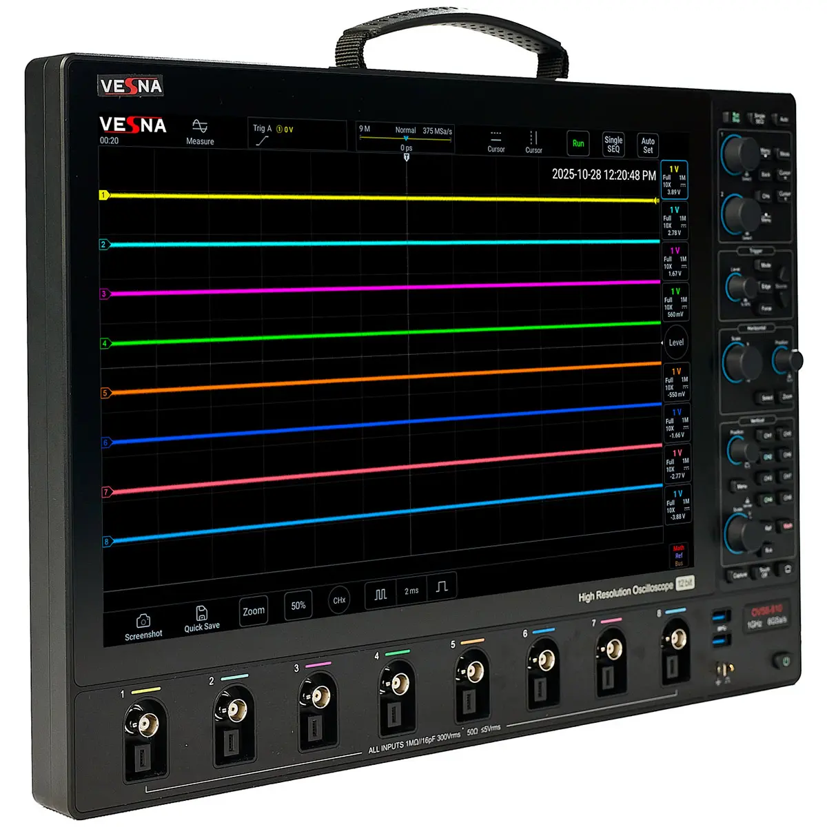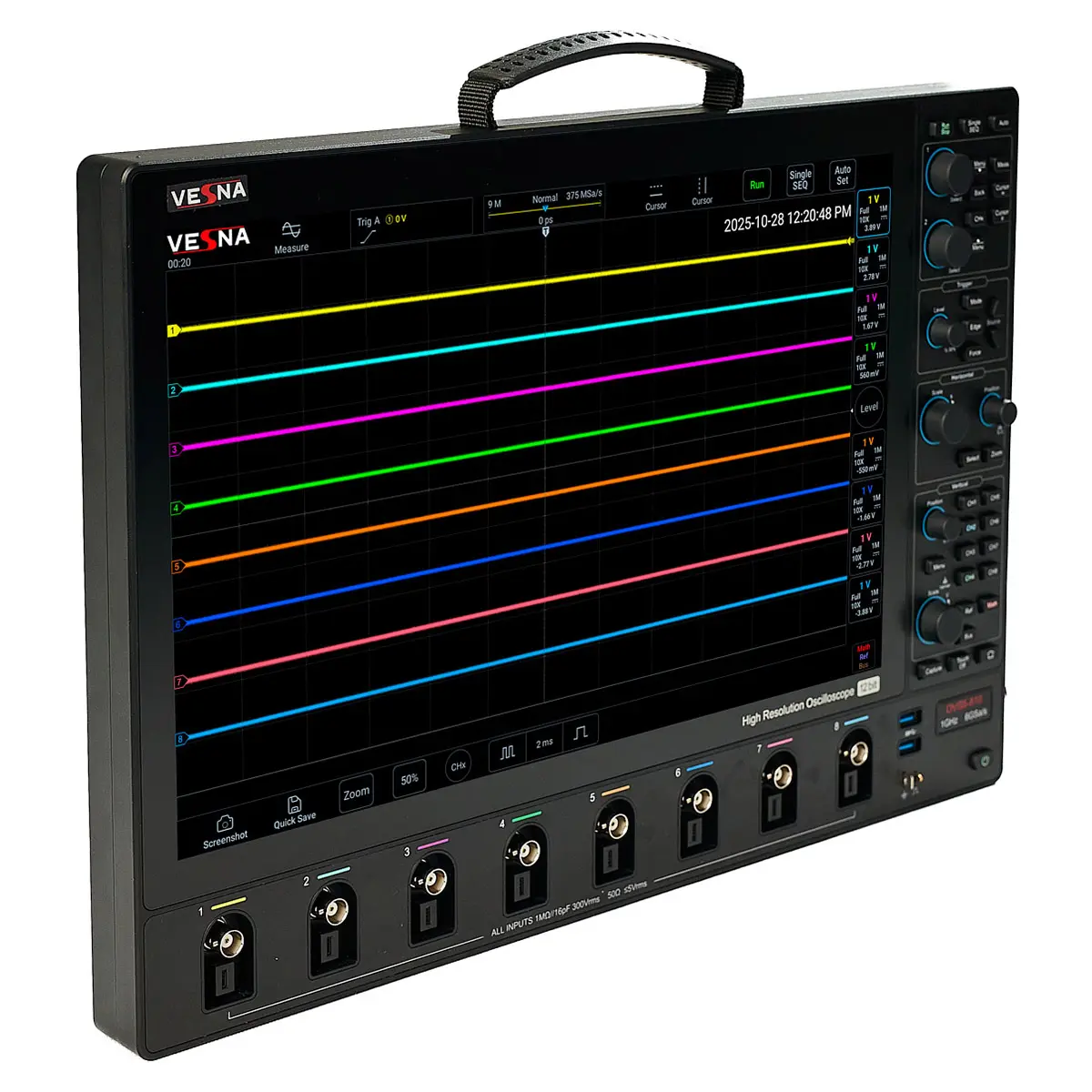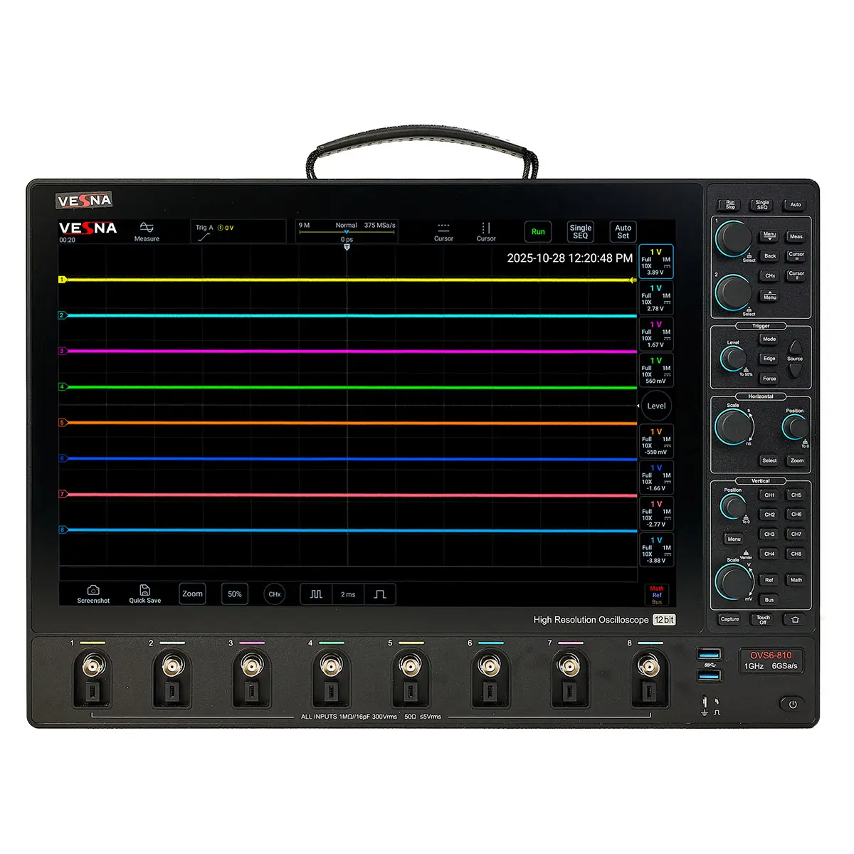 При полосе 500 МГц VESNA OVS6-805 остается более доступным, чем гигагерцовые модели, но сохраняет ключевые преимущества линейки OVS6: 12-битный АЦП, высокую скорость обновления и глубокую память. Это делает его оптимальным выбором для инженерных центров, сервисных лабораторий и учебных заведений, где важны и функциональность, и экономическая эффективность.