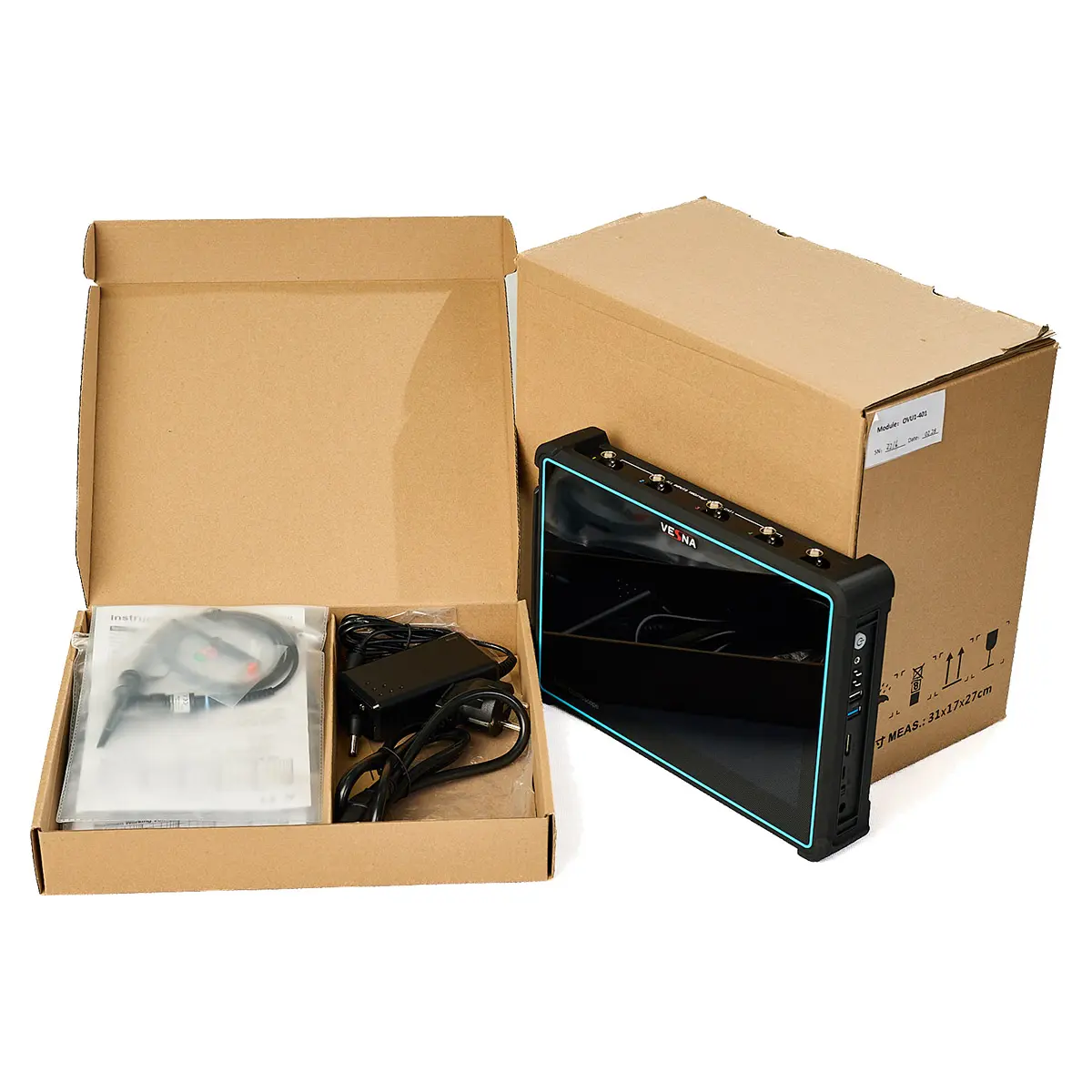 Благодаря компактному форм-фактору и большому дисплею, прибор удобно использовать как на рабочем столе, так и в цеху, на подстанции или в автомобиле. Он сочетает в себе всю функциональность профессионального осциллографа и автономность, необходимую для выездных работ.