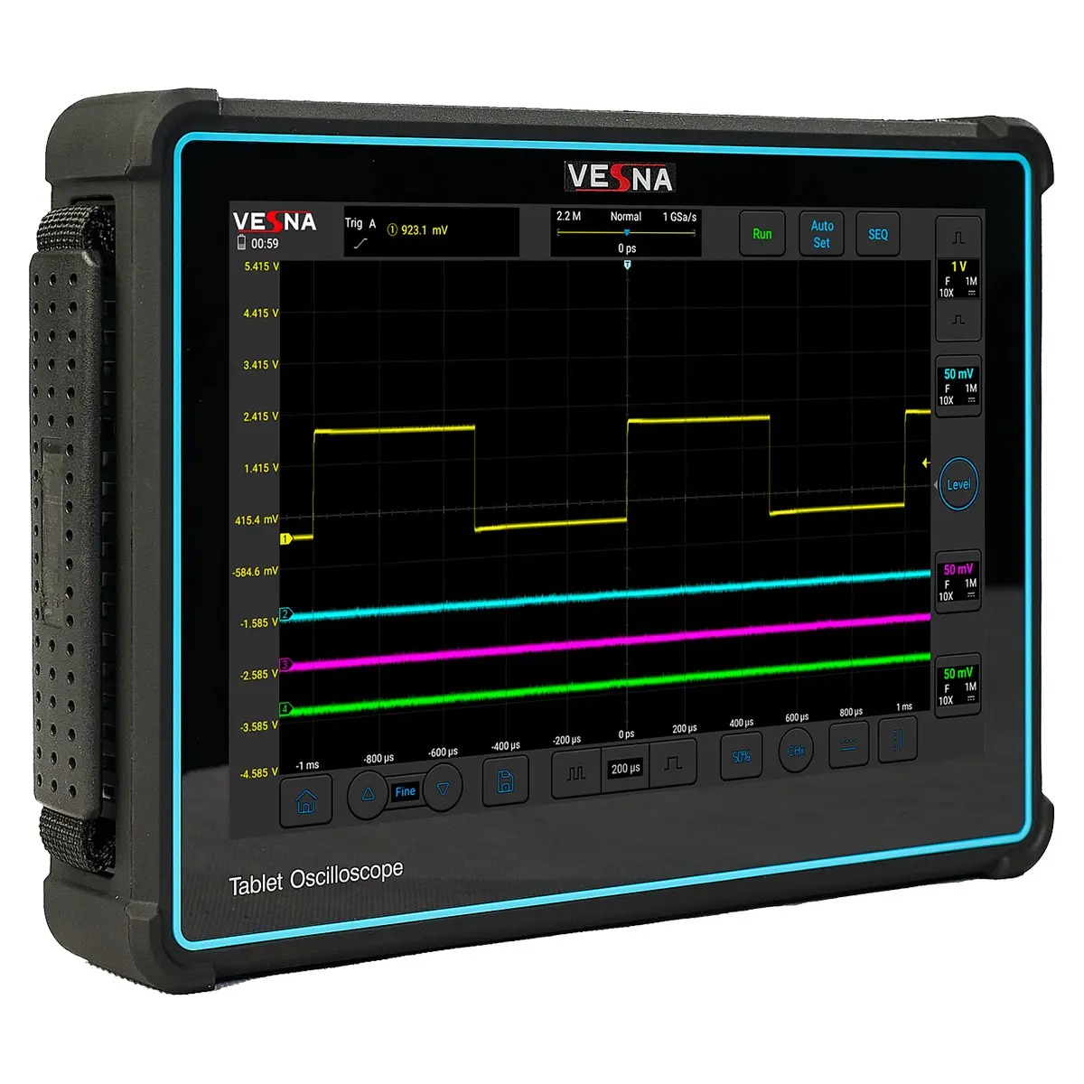 Благодаря компактному корпусу и большому экрану, прибор одинаково удобен и на рабочем столе, и в полевых условиях. Он не требует подключения к ПК для анализа — вся информация отображается локально с возможностью сохранения осциллограмм во встроенную память.
