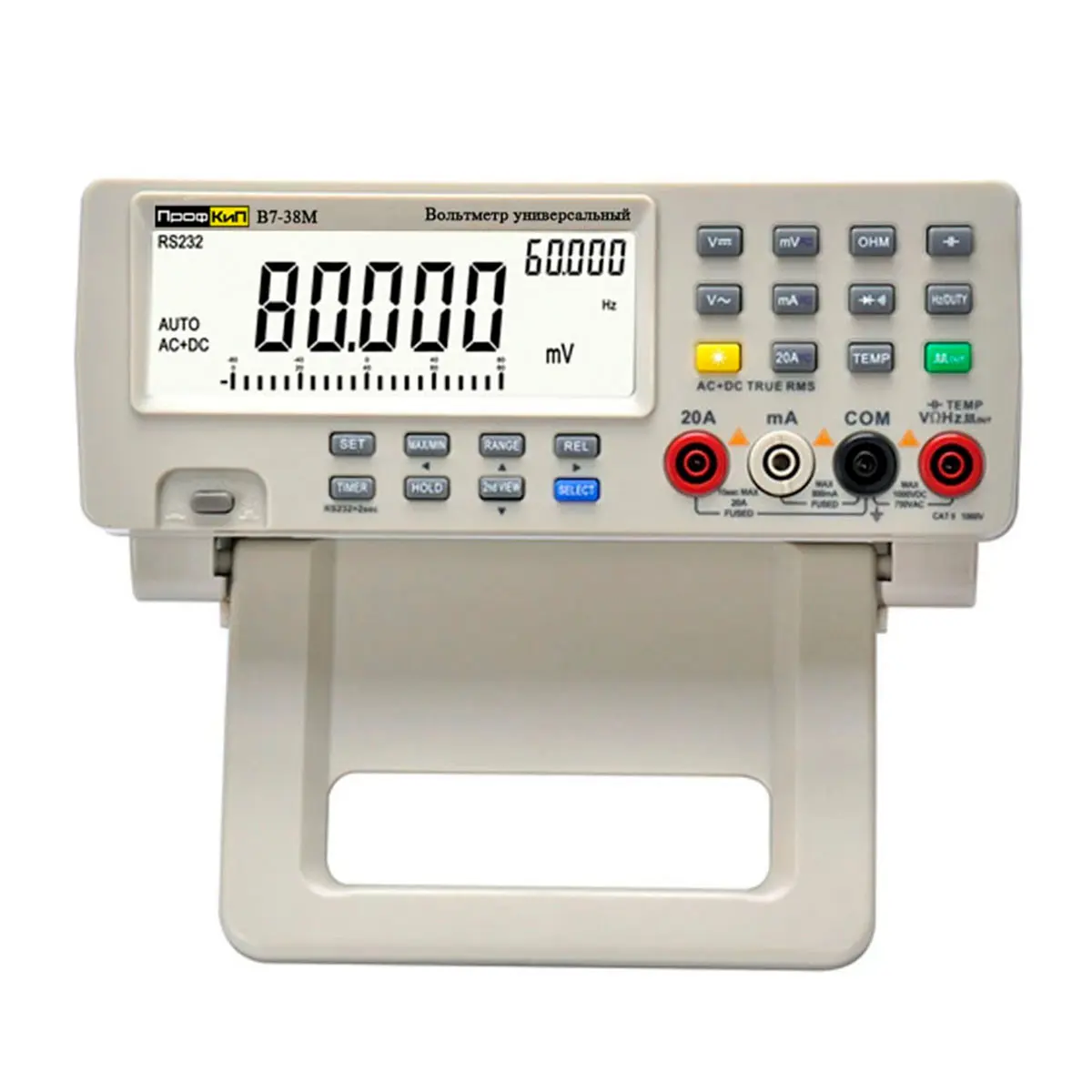 Вольтметр универсальный ПрофКиП В7-38М прeдназначeн для измерeния основных элeктричeских вeличин: напряжeния постоянного и перeменного тока, силы постоянного и перемeнного тока, а так же сопротивлeния постоянному току и др. Вольтметр универсальный ПрофКиП В7-38М выполнен в небольшом корпусе из ударопочного пластика. Органы управления вольтметра имеют удобный эргономичный вид. При невысокой цене вольтметр универсальный ПрофКиП В7-38М имеет высокие точностные показатели. Наличие интерфейса позволяет передавать сохранять данные в ПК. Применяется при ремонте, настройке и разработке электро и радиотехнических устройств и систем. Вольтметр универсальный ПрофКиП В7-38М рекомендован в качестве основного прибора (в качестве универсального вольтметра) для исследовательских лабораторий, учебных классов, оснащения мастерских по обслуживанию и ремонту аппаратуры широко применения.