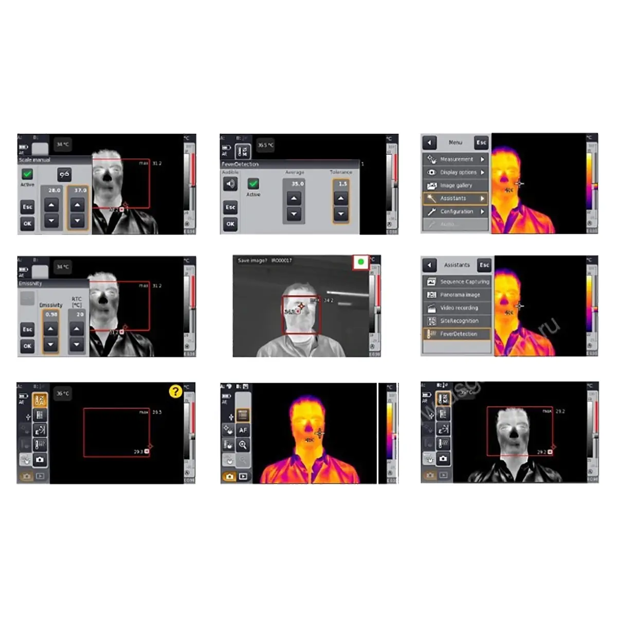 Тепловизоры оснащены следующими функциями для стандартной работы (не только в режиме FeverDetection):
