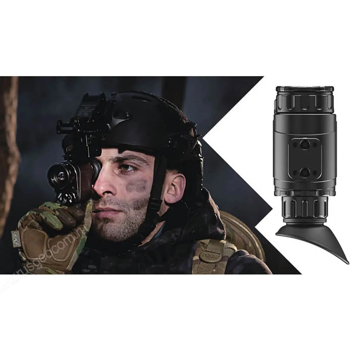 iRay xMini ML 19 совместим с различными креплениями на шлем, которые позволяют освободить руки для стрельбы и других операций. Изображение автоматически адаптируется к положению прибора в различных вариантах установки. Встроенный электронный компас упрощает навигацию, а стадиометрический дальномер помогает рассчитать поправки, необходимые для точного выстрела.