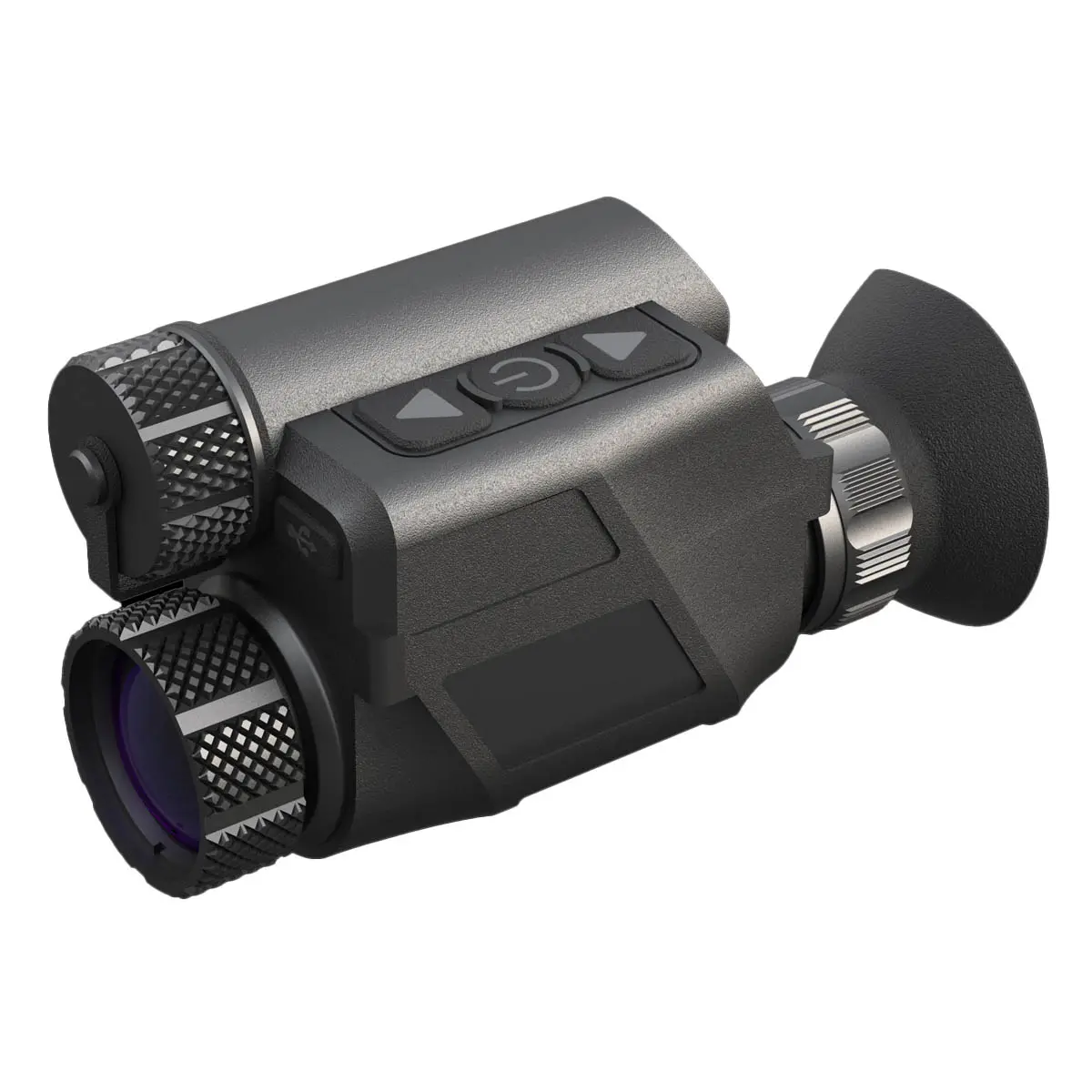 Тепловизионный монокуляр работает в длинноволновом диапазоне 8-14 мкм, что позволяет эффективно обнаруживать цели в условиях дыма, тумана и других атмосферных помех.