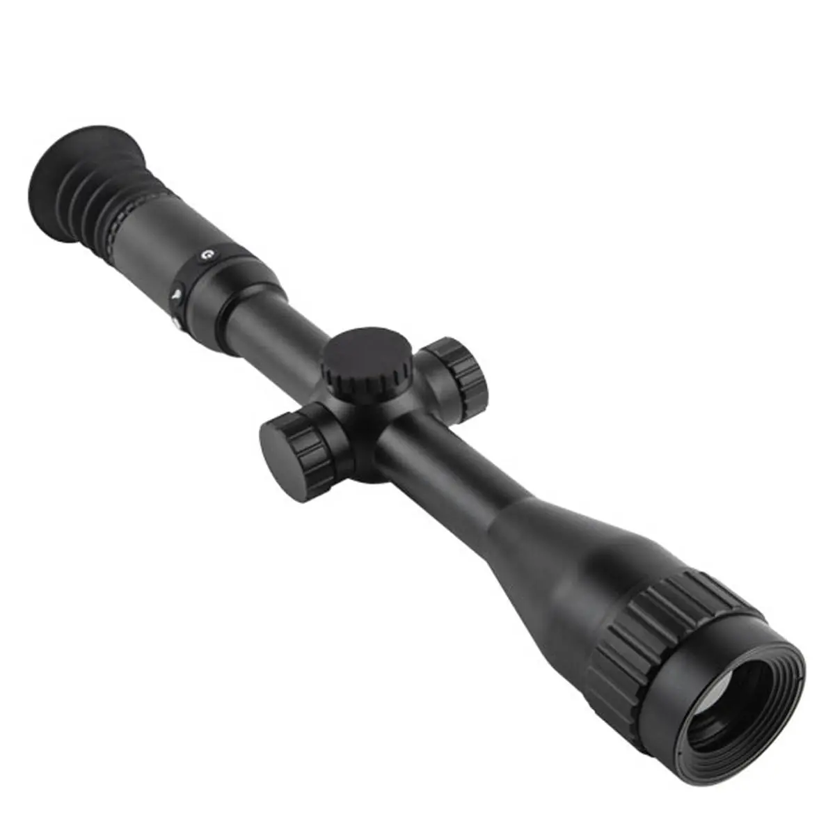 - Многофункциональные кнопки – включение-выключение, цифровое зуммирование и управление записью видео и сохранением снимков производится тремя клавишами, размещенными кольцеобразно перед окуляром, которые также обеспечивают вывод прибора из спящего режима, включение дисплея и ручную калибровку ИК-датчика.