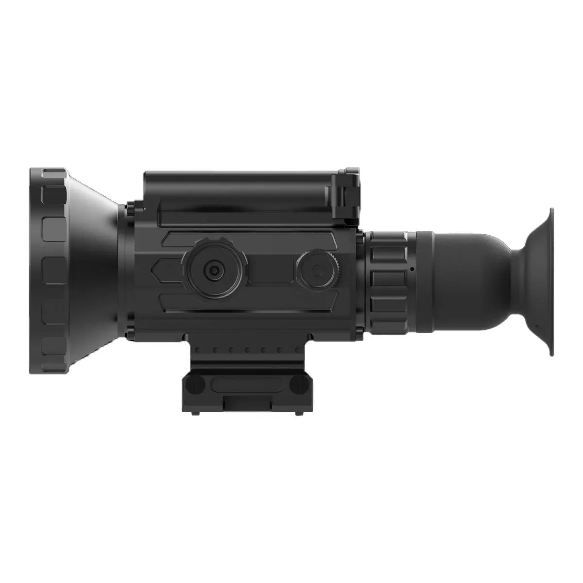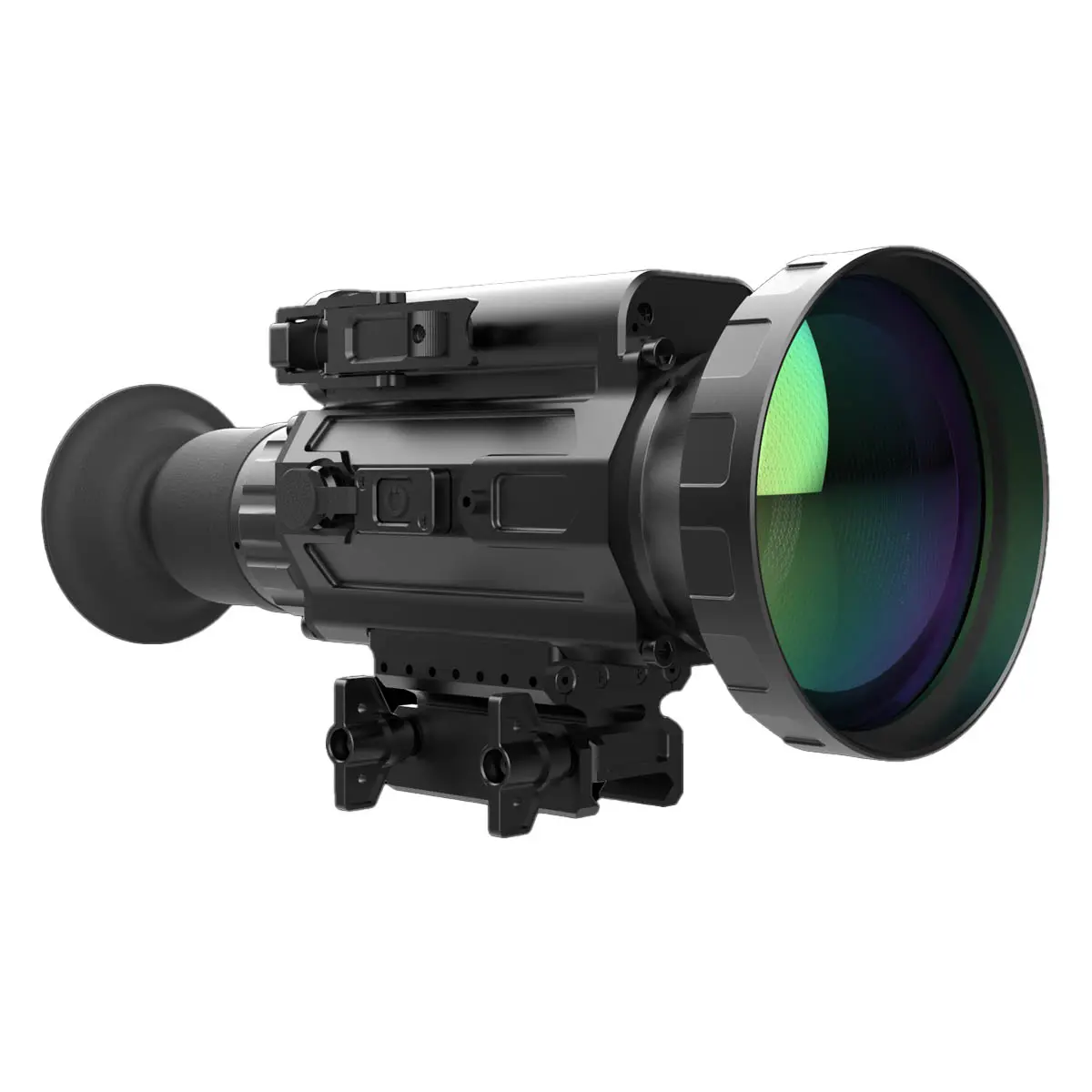 Тепловизионный прицел укомплектован инфракрасной матрицей 640х512 и объективом 90 мм, что обеспечивает непревзойденную четкость и дальность обнаружения и распознавания. Вы можете легко идентифицировать цели на расстоянии до 2000 метров, сохраняя высочайшее качество изображения.