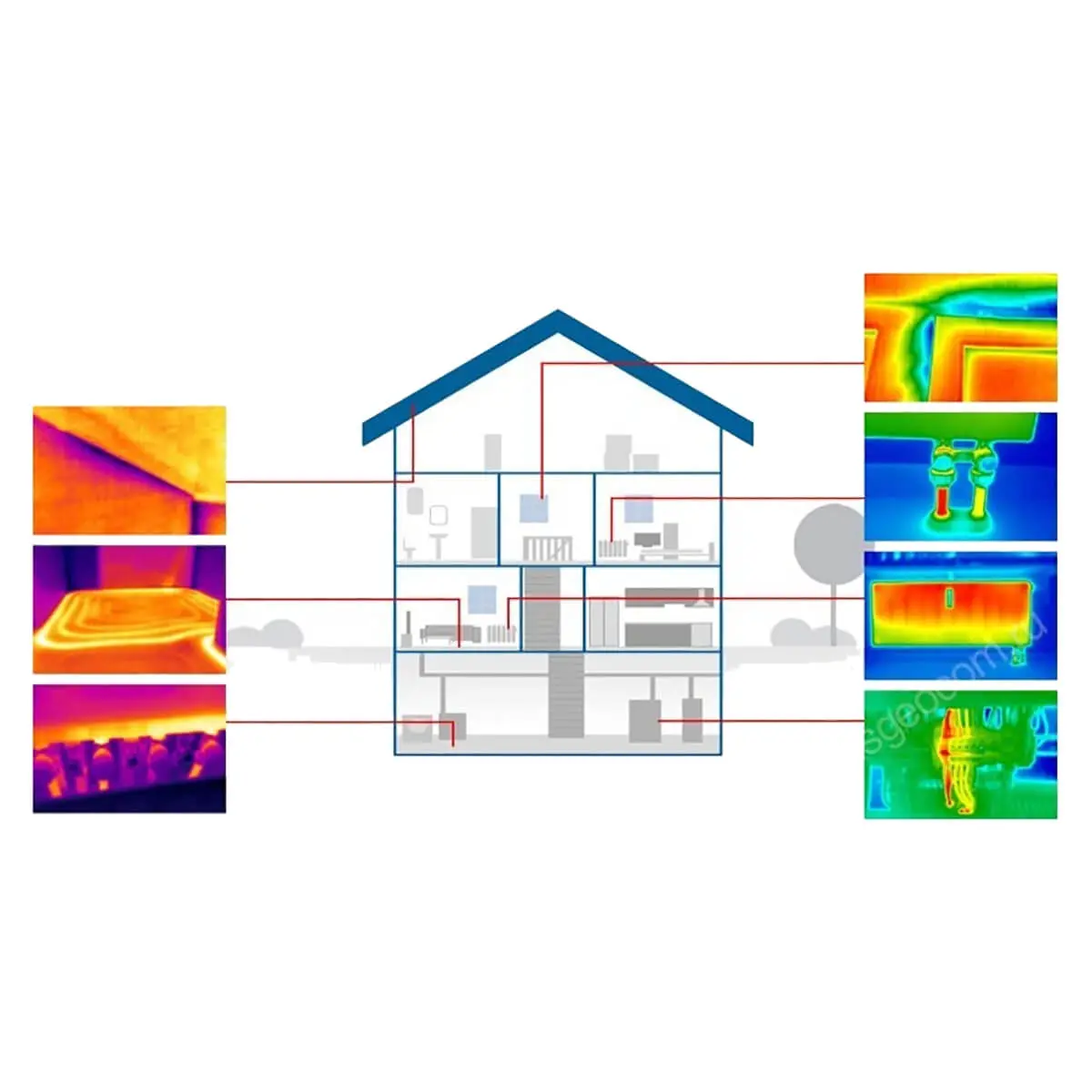 Прибор используется для выполнения работ , связанных с прокладкой систем отопления и кондиционирования помещений, вентиляции и электрических сетей. С его помощью можно проверять теплотехнические характеристики помещений после установки межкомнатных перегородок, окон и дверей, утепляющих слоев. Специалист может обнаружить утечки теплоносителя в системах подогрева полов, обнаружить скрытые инженерные коммуникации, оценить фактическое состояние теплоизолирующего слоя.