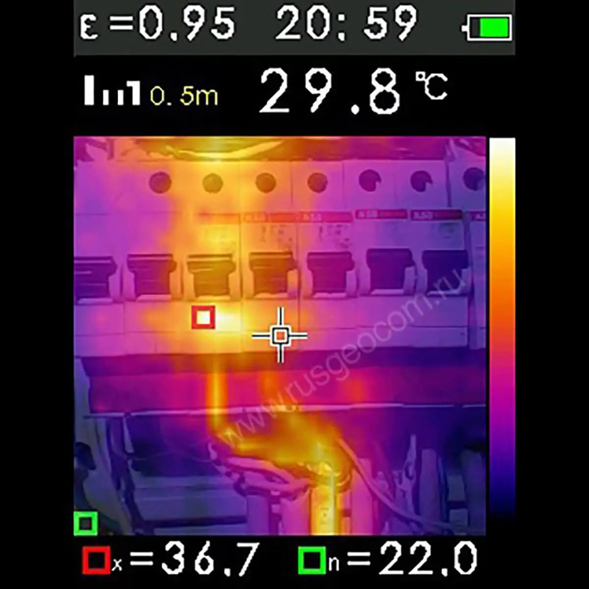 Тепловизор DT-9868 предназначен для локализации энергонагруженных элементов и мест утечек тепла/холода на небольших расстояниях от исследуемого объекта: 0,5 м, 1,0 м, 2,0 м. Поэтому DT9868 удобен в первую очередь электрикам для которых есть задача инспекции распределительных щитов на предмет быстрой локализации нагретых элементов (кабелей / выключателей и пр.), установщикам металлопластиковых окон, для контроля качества теплоизоляции на небольших участках, поиск мест утечек тепла, инспекция электронных сборок.