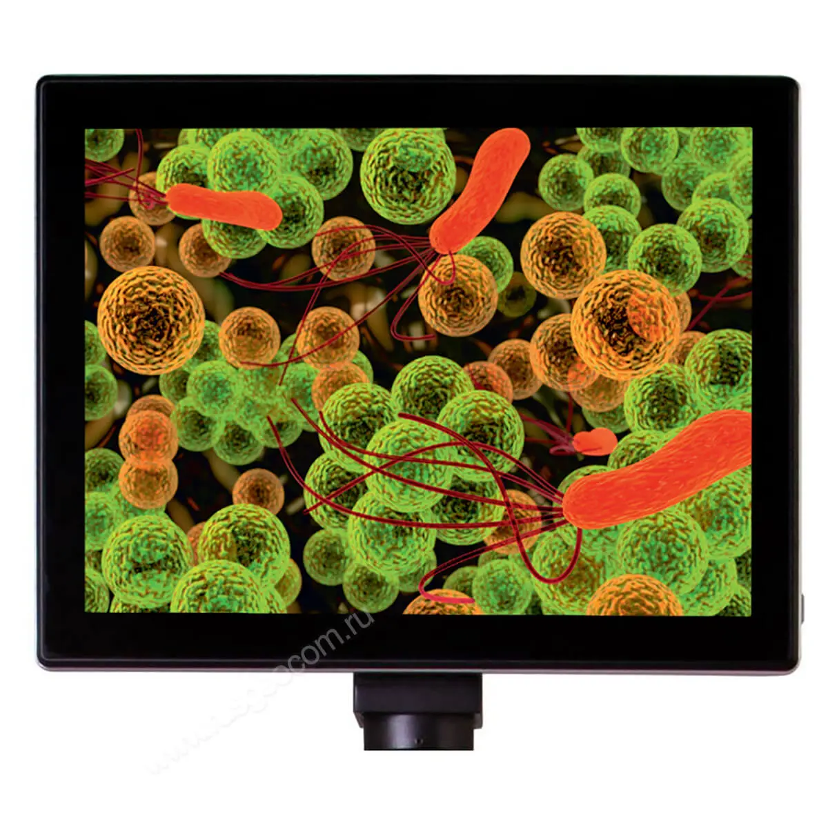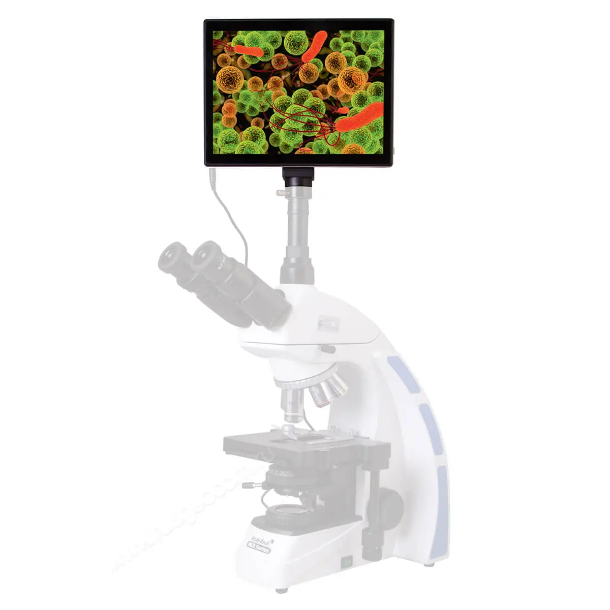 Перед вами цифровая камера с цветным сенсорным экраном, который работает на Android. По сути – это компьютер, который показывает изображение с объектива микроскопа, позволяет записывать видеоролики, снимать фотографии и сохранять их во внутренней памяти или на внешних носителях данных. И управлять этим компьютером можно всего одним касанием. Цифровая камера Levenhuk MED – это полноценная система визуализации, делающая работу в лаборатории наиболее продуктивной. Так как ход исследований показывается прямо на экране, нет нужды постоянно смотреть в окуляры – глаза смогут отдохнуть от непрерывной работы.