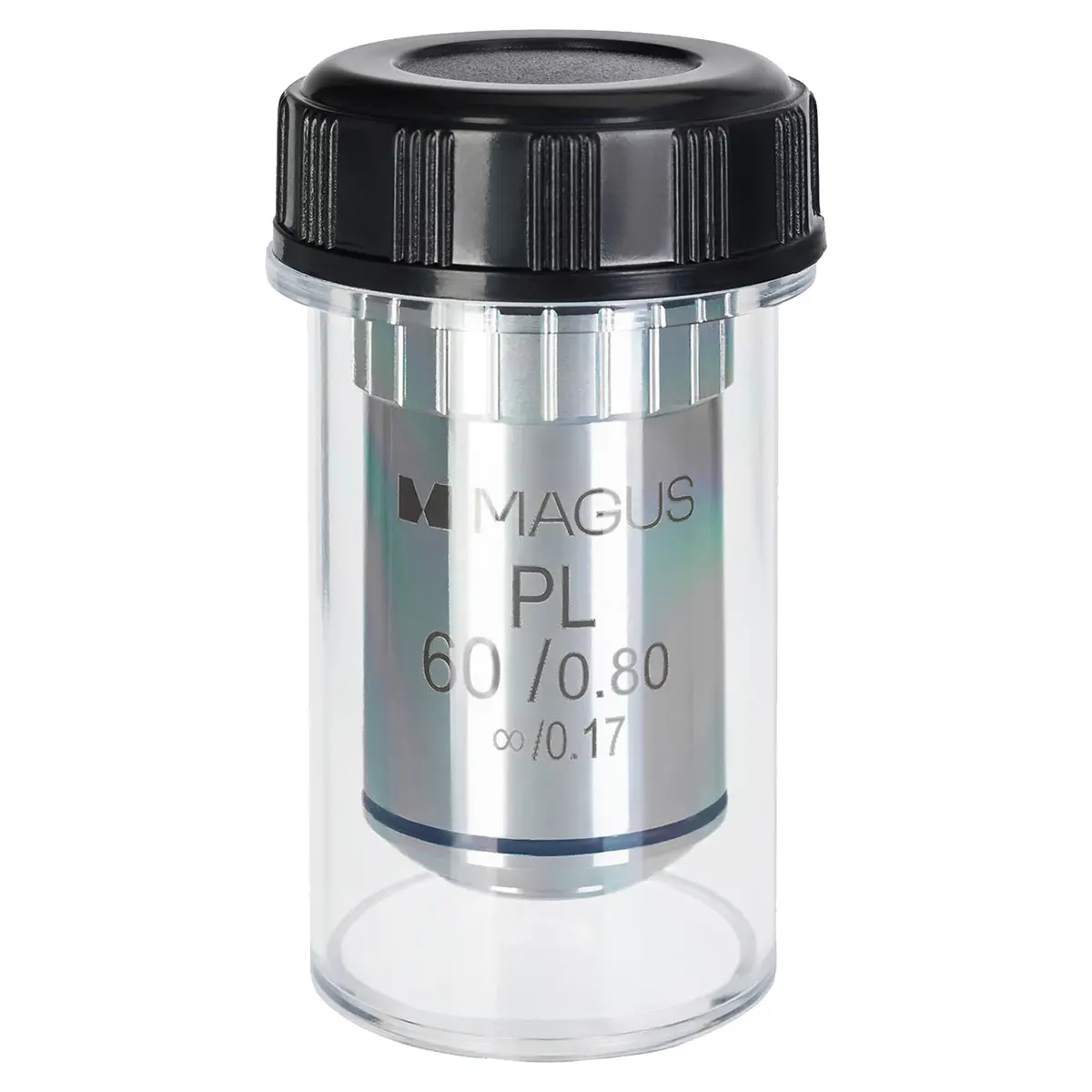 С объективом MAGUS MP60 60х/0,80 Plan ∞/0,17 рекомендуется использовать окуляры с кратностью от 7x до 14x. Оптимальная толщина покровного стекла – 0,17 мм.