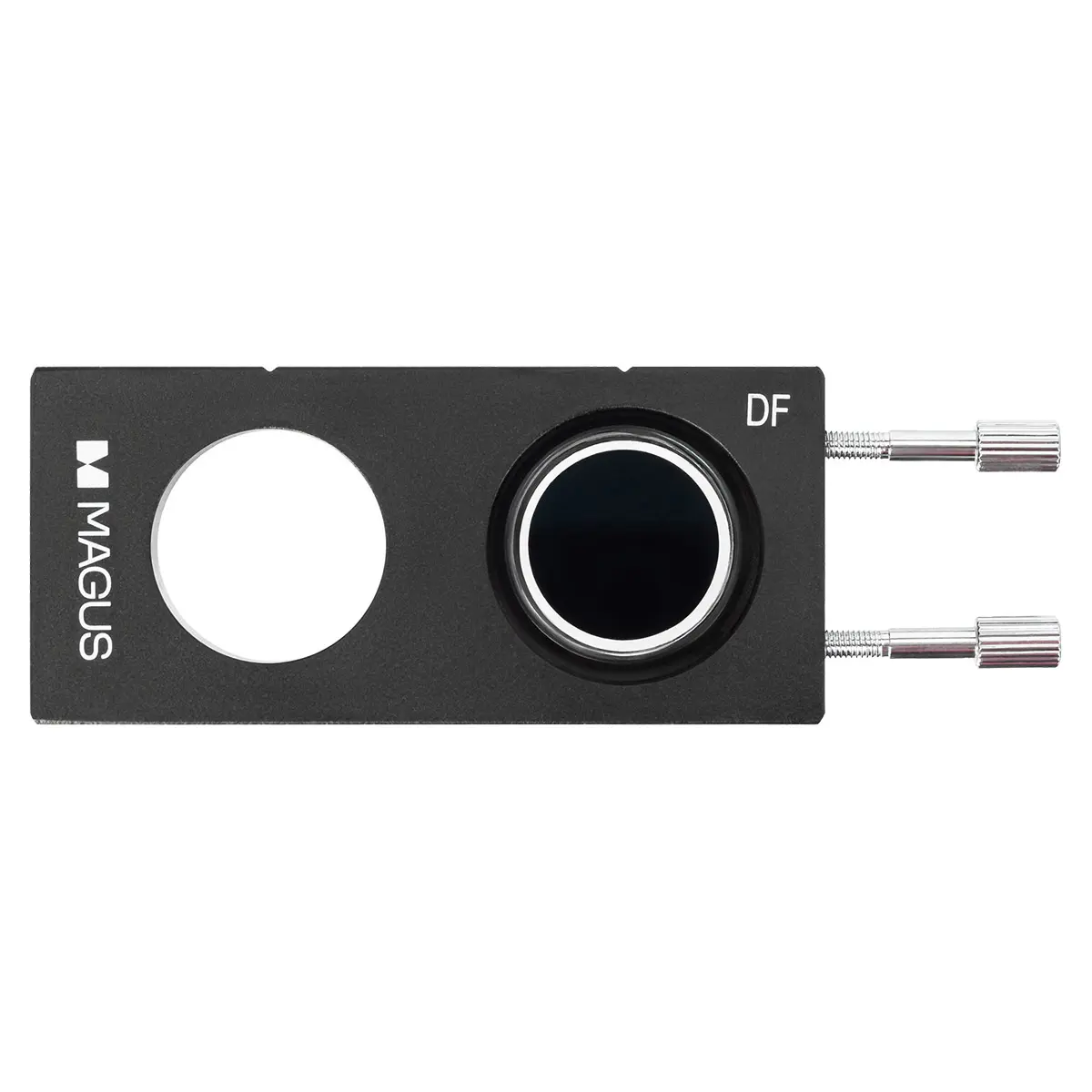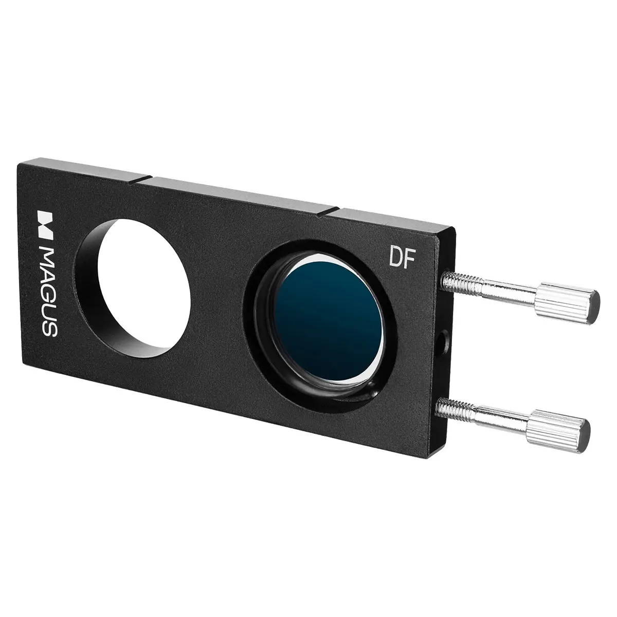 Слайдер для исследований прозрачных объектов методом темного поля, без их окрашивания. Представляет собой вставку в конденсор Аббе. Кроме встроенной диафрагмы слайдер имеет свободное отверстие для быстрого переключения на метод светлого поля. Слайдер MAGUS DFS1 – удобная замена обычному темнопольному конденсору, для установки которого надо снимать с микроскопа конденсор Аббе.