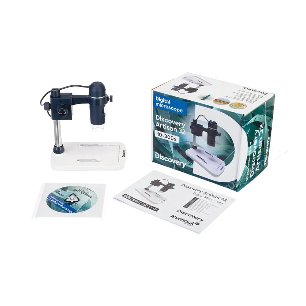Цифровой микроскоп Discovery Artisan 32 - результат сотрудничества компании Levenhuk и телеканала Discovery. Прибор можно подключить по USB к настольному ПК, ноутбуку или смартфону для проведения исследований с увеличением до 300 крат.