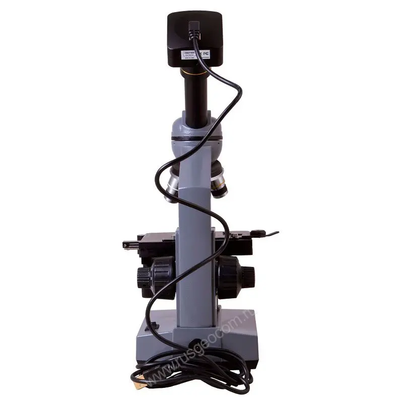 Цифровая камера располагается непосредственно в окулярной трубке. Для ее подсоединения к ПК или внешнему монитору используется USB-кабель, входящий в комплект. Камера дает возможность не только транслировать процесс наблюдения на внешний монитор, но и вести запись фото и видео для создания архива и документации. Также входящее комплект ПО Levenhuk позволяет редактировать полученные изображения, изменяя их контрастность и улучшая четкость.