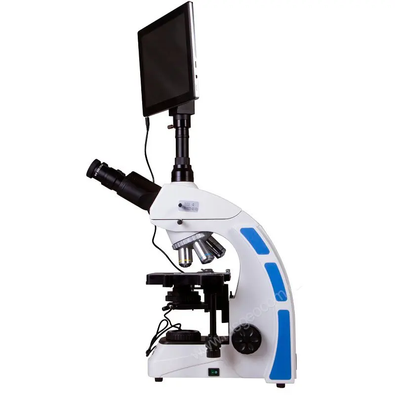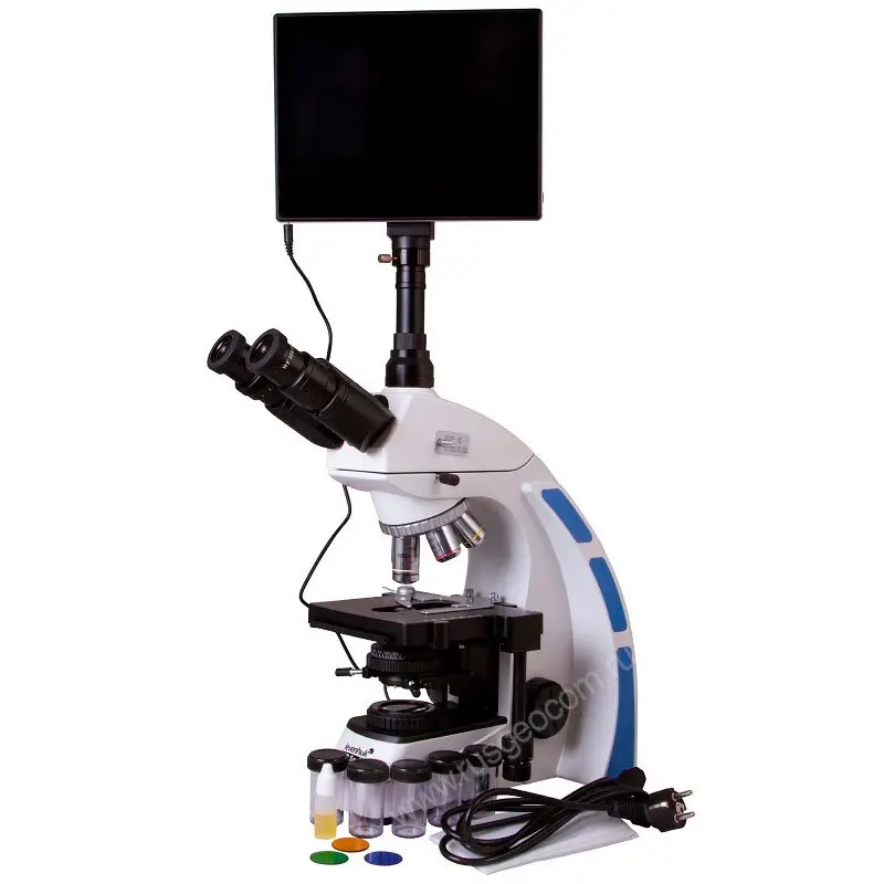 Благодаря наклону наблюдательной части биологического микроскопа Levenhuk MED D45T LCD на 30°, вам не придется напрягать шею и плечи при долговременных исследованиях. Также все оптические элементы устройства имеют покрытие, защищающее от грибка, что очень полезно при биологических исследованиях.Для удобного и оперативного размещения исследуемого материала под объективом предметный столик прибора оснащен препаратоводителем. Также вы можете установить дополнительные фильтры в специальный держатель для изменения контрастности и улучшения детализации.Результаты работы вы можете сохранить на съёмной карте microSD емкостью до 32 ГБ, что позволяет составлять обширную библиотеку данных.Для дальнейшей обработки изображений и видео в комплект поставки включен компакт-диск с ПО, которое позволяет изменять цветовые параметры изображения.