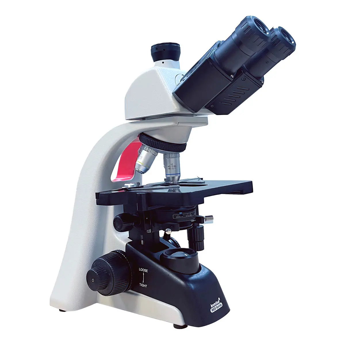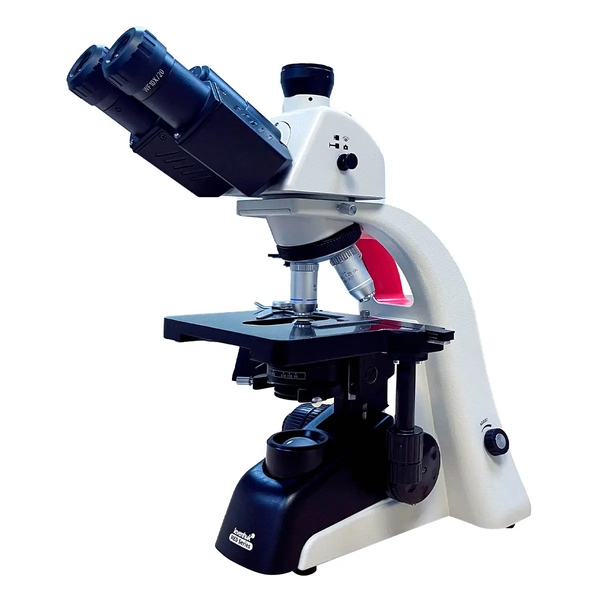 В комплектацию Levenhuk MED А1600EP LED входят 4 объектива с увеличениями 4х, 10х, 40х и 100х. Объектив 100х также может быть использован для исследований иммерсионным методом. Окуляры с вынесенным зрачком обеспечивают удобство наблюдений в очках, а их увеличение составляет 10 крат. Для обоих окуляров предусмотрена диоптрийная коррекция.