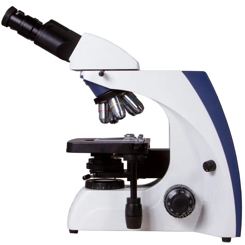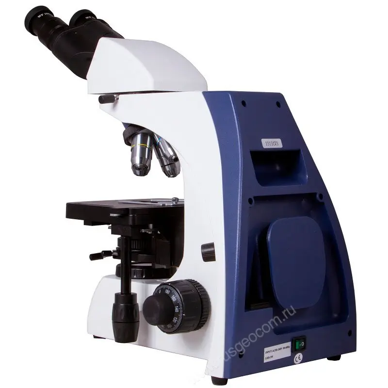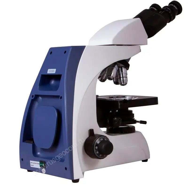 Наклон наблюдательной части микроскопа на 30° позволяет снизить нагрузку с шеи и плеч при длительных экспериментах. Специальное антигрибковое покрытие оптических деталей обеспечивает безопасное для оборудования использование микроскопа для биологических опытов.