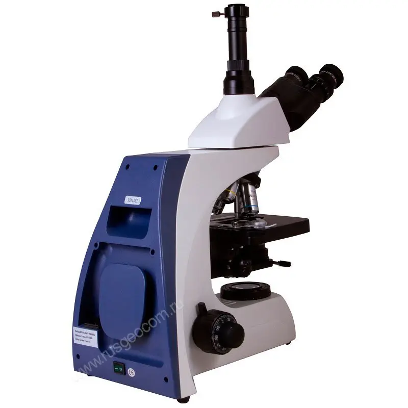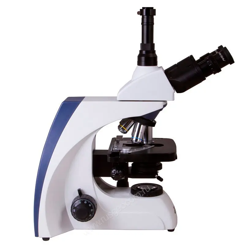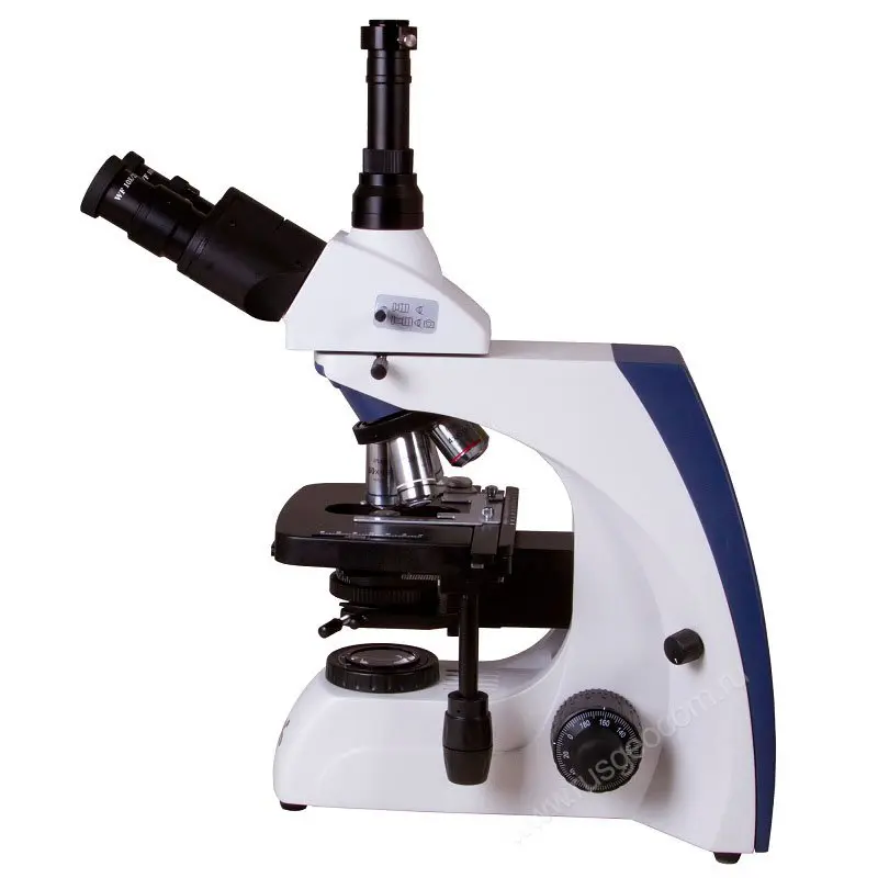 Наклон наблюдательной части данного лабораторного микроскопа на 30° позволяет снизить нагрузку с шеи и плеч при длительных экспериментах. Специальное антигрибковое покрытие оптических деталей позволяет безопасно для оборудования использовать микроскоп для биологических опытов.