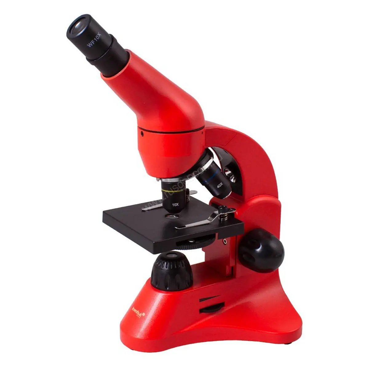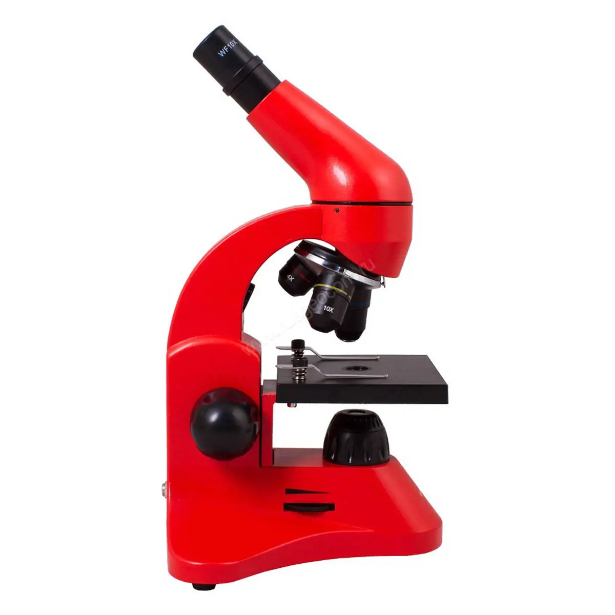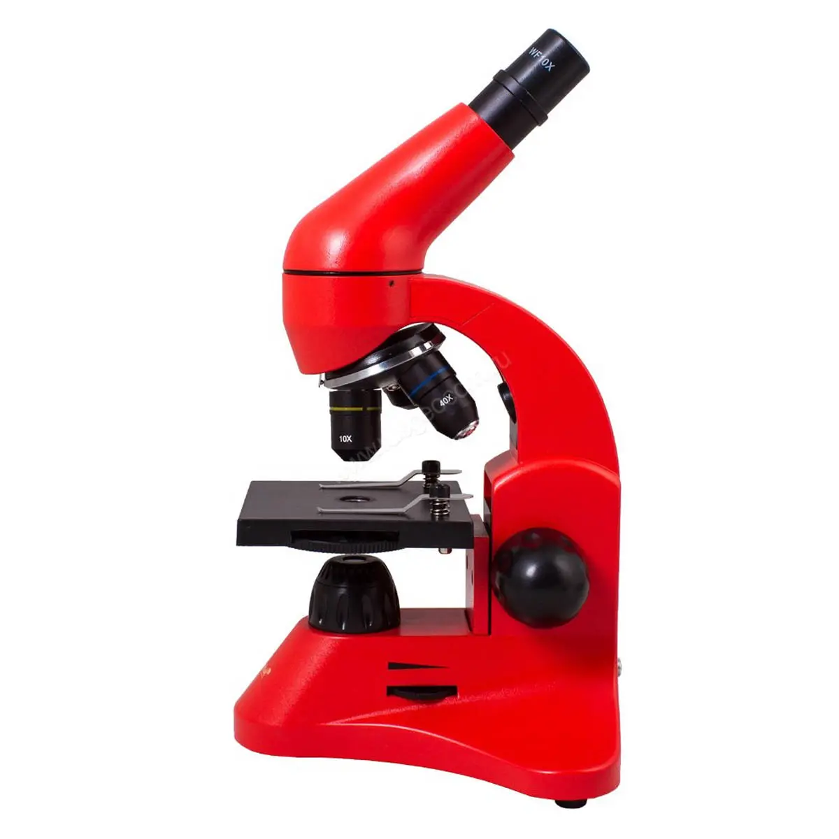 Школьный микроскоп снабжен тремя объективами, которые позволяют получить увеличение от 40 до 400 крат. Для смены кратности нужно повернуть револьверное устройство. Линза Барлоу удваивает кратность прибора с каждым объективом – максимальное увеличение в базовой комплектации достигает 800 крат!