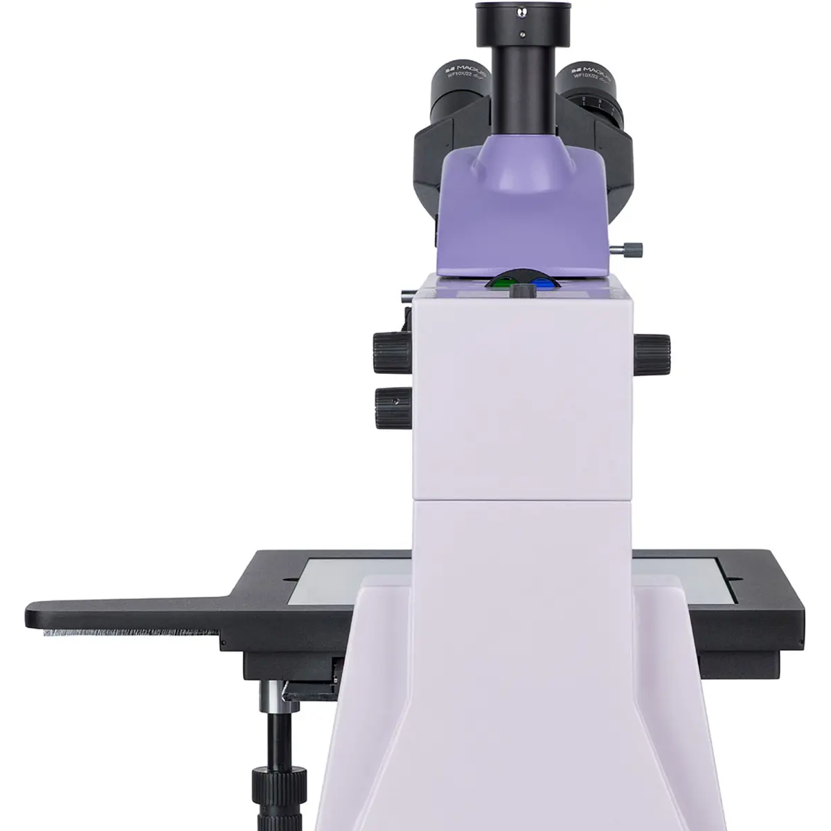 Микроскоп MAGUS оснащен тринокулярной визуальной насадкой, которая позволяет установить цифровую камеру и делитель светового потока. Это дает возможность одновременно наблюдать объекты через окуляры и записывать изображения с помощью камеры. Делитель светового потока позволяет настроить пропорцию света между окулярами и камерой.