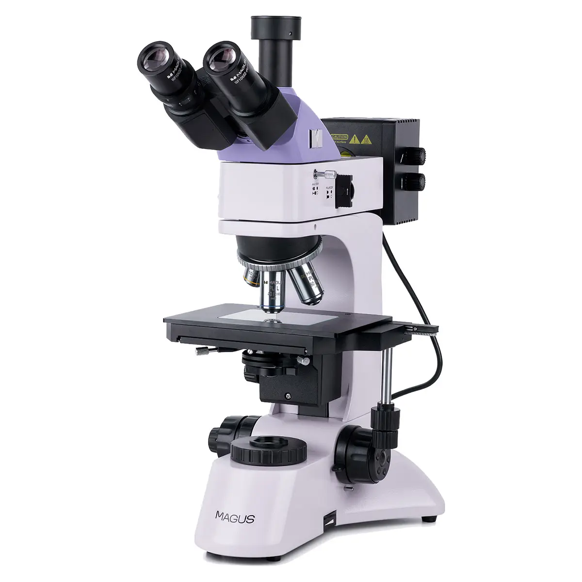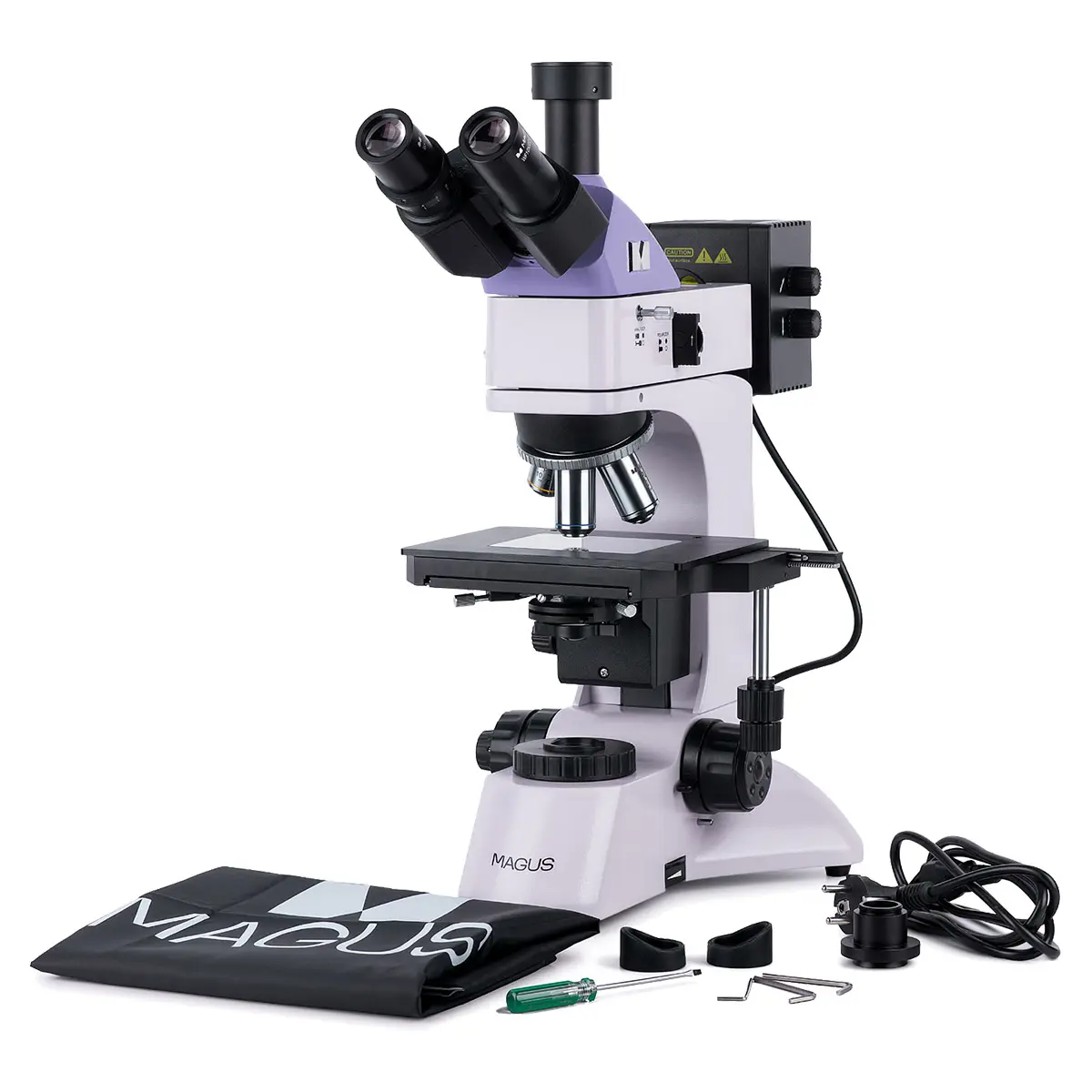 Микроскопа MAGUS применяется для изучения непрозрачных и полупрозрачных объектов высотой не более 20 мм. Важным требованием является параллельность опорной и исследуемой поверхностей объекта. Прибор укомплектован тринокулярной визуальной насадкой с вертикальным тубусом, который позволяет установить цифровую камеру и делитель светового потока.
