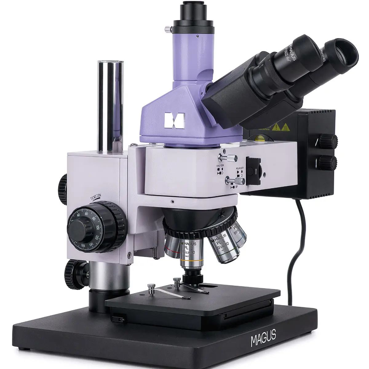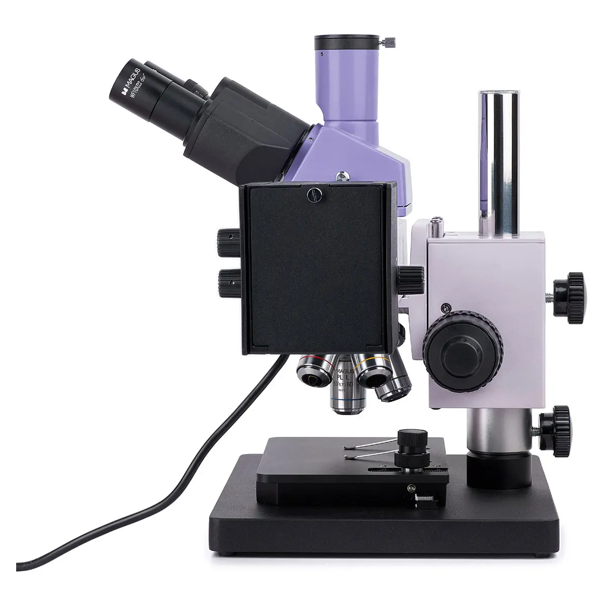MAGUS Metal 630 BD оснащен револьвером для пяти объективов. Это позволяет быстро переключаться между различными увеличениями. Кроме того, свободное отверстие револьвера можно использовать для настройки положения лампы осветителя отраженного света или установки дополнительного объектива для получения дополнительного увеличения.